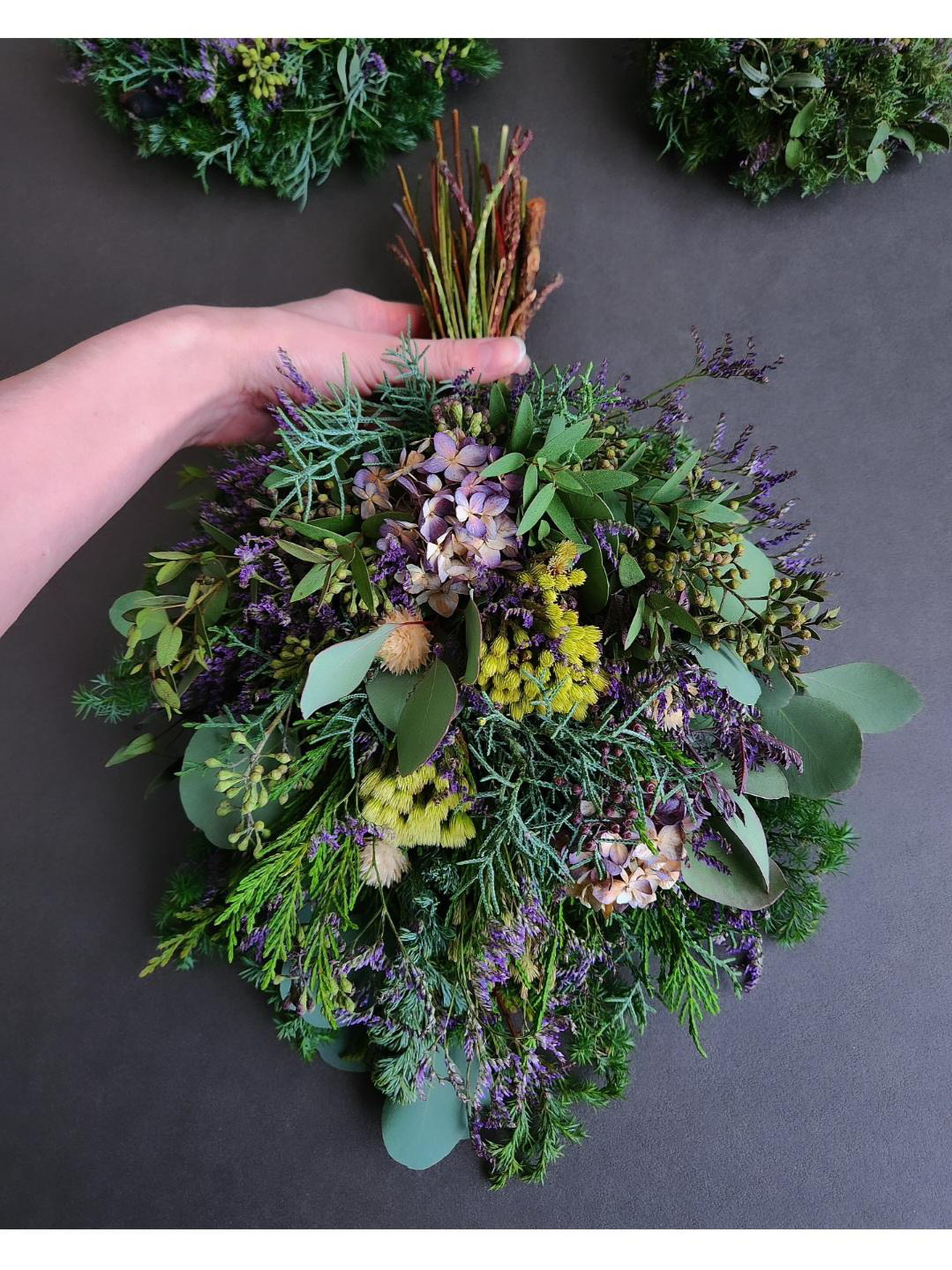 マルシェ出店では、インテリア空間に飾ってお楽しみいただけるリースやスワッグ等をメインとしてお持ちし、植物の魅力をお伝えしております