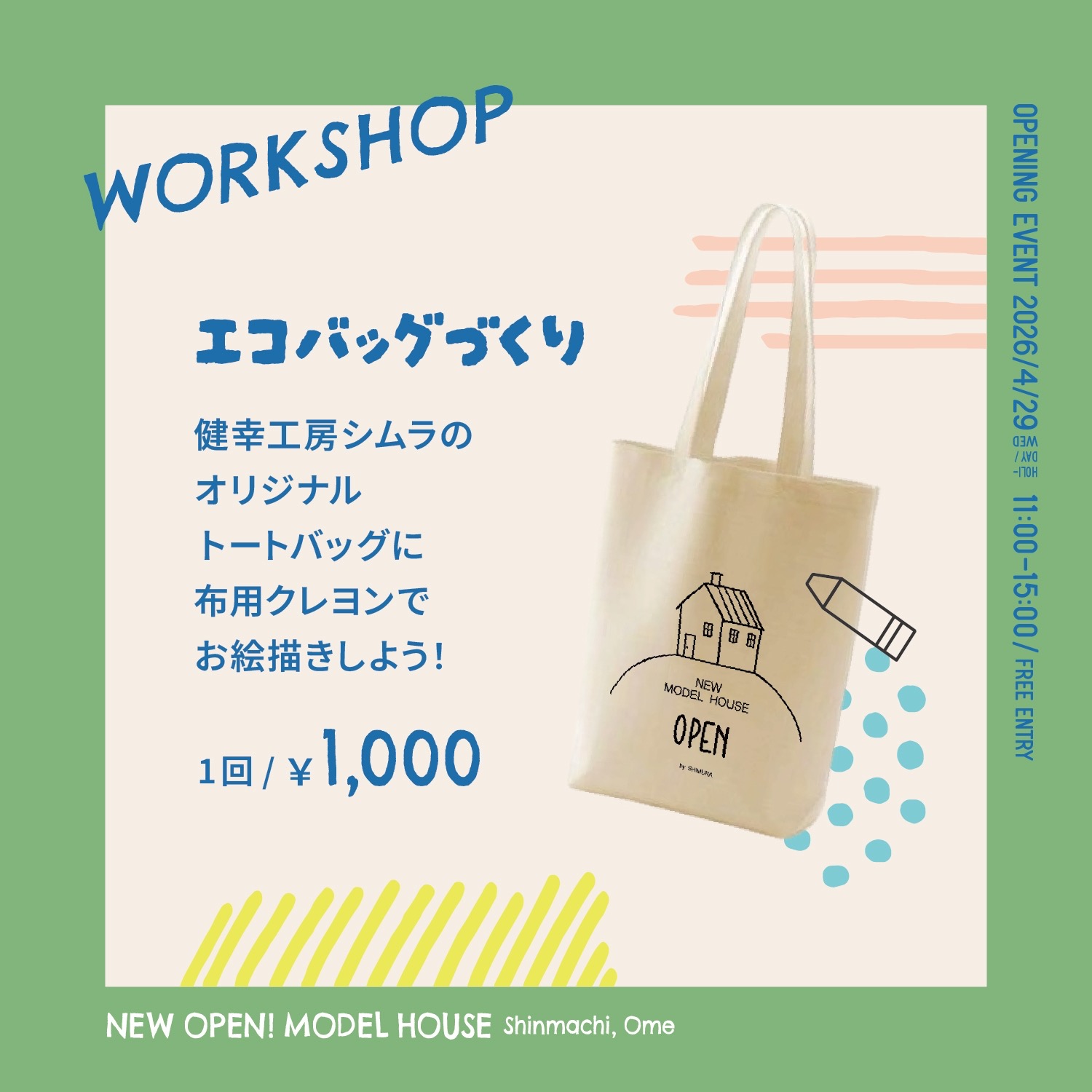 健幸工房シムラのオリジナルトートバッグに布用クレヨンで お絵描きしよう♪ どなたでも参加できます! (1回 1,000円)