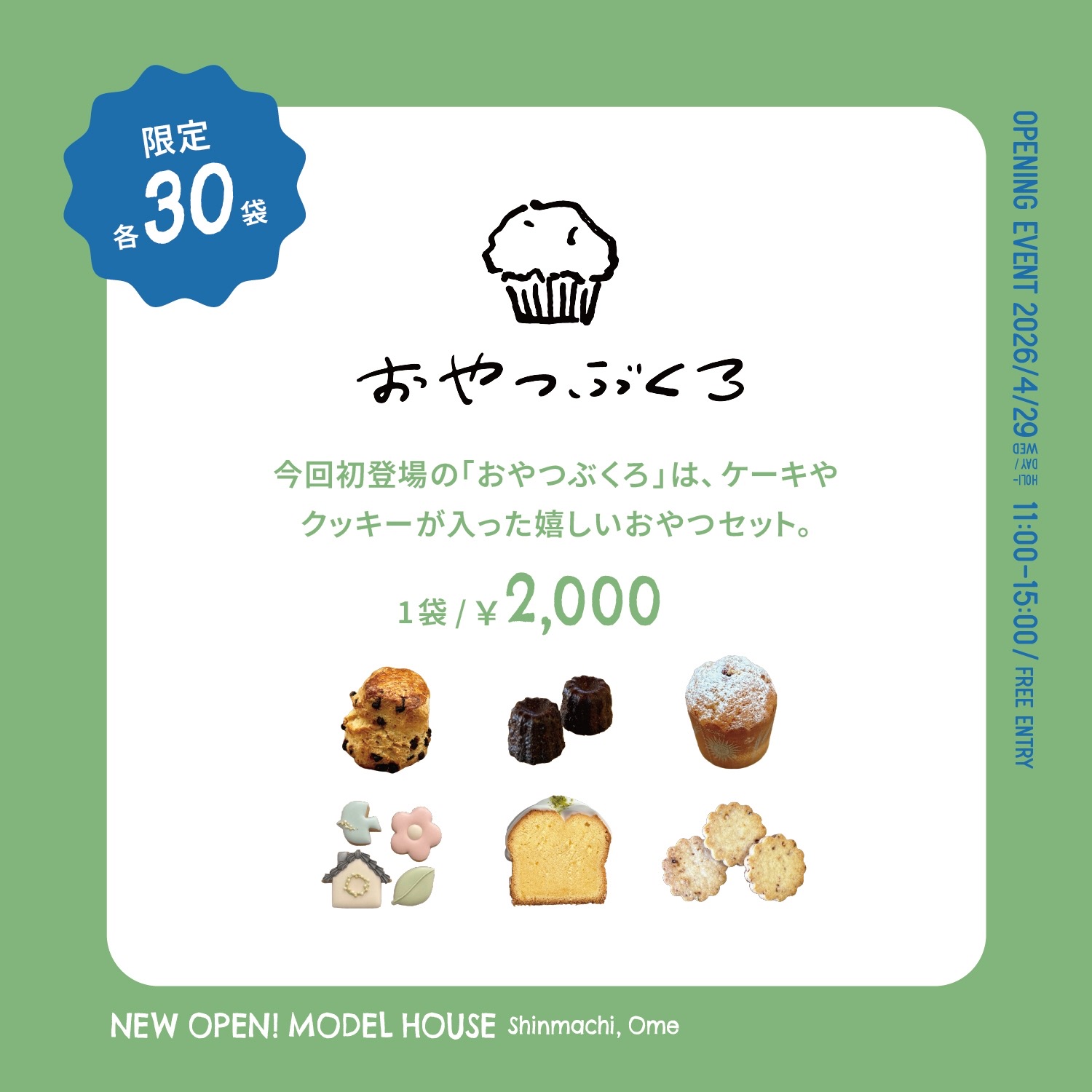 4/29(水・祝)開催の新モデルハウスオープニングイベントで販売する 「おやつぶくろ」の内容をご紹介!