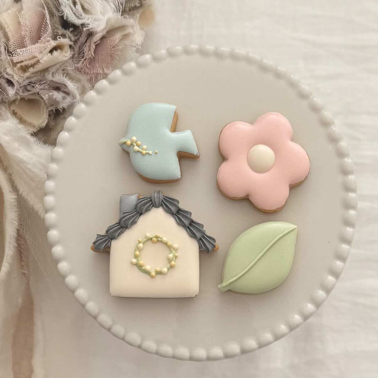 パステルカラーが目を引く、かわいらしいクッキー。 ひとつひとつ丁寧に仕上げたデザインは、見ているだけで心が弾みます♪