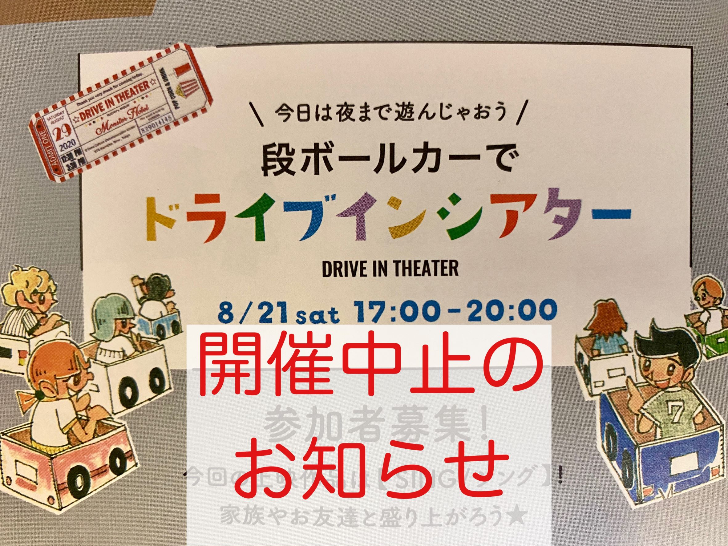 【8/21(土)段ボールカーでドライブインシアターイベント中止のお知らせ】