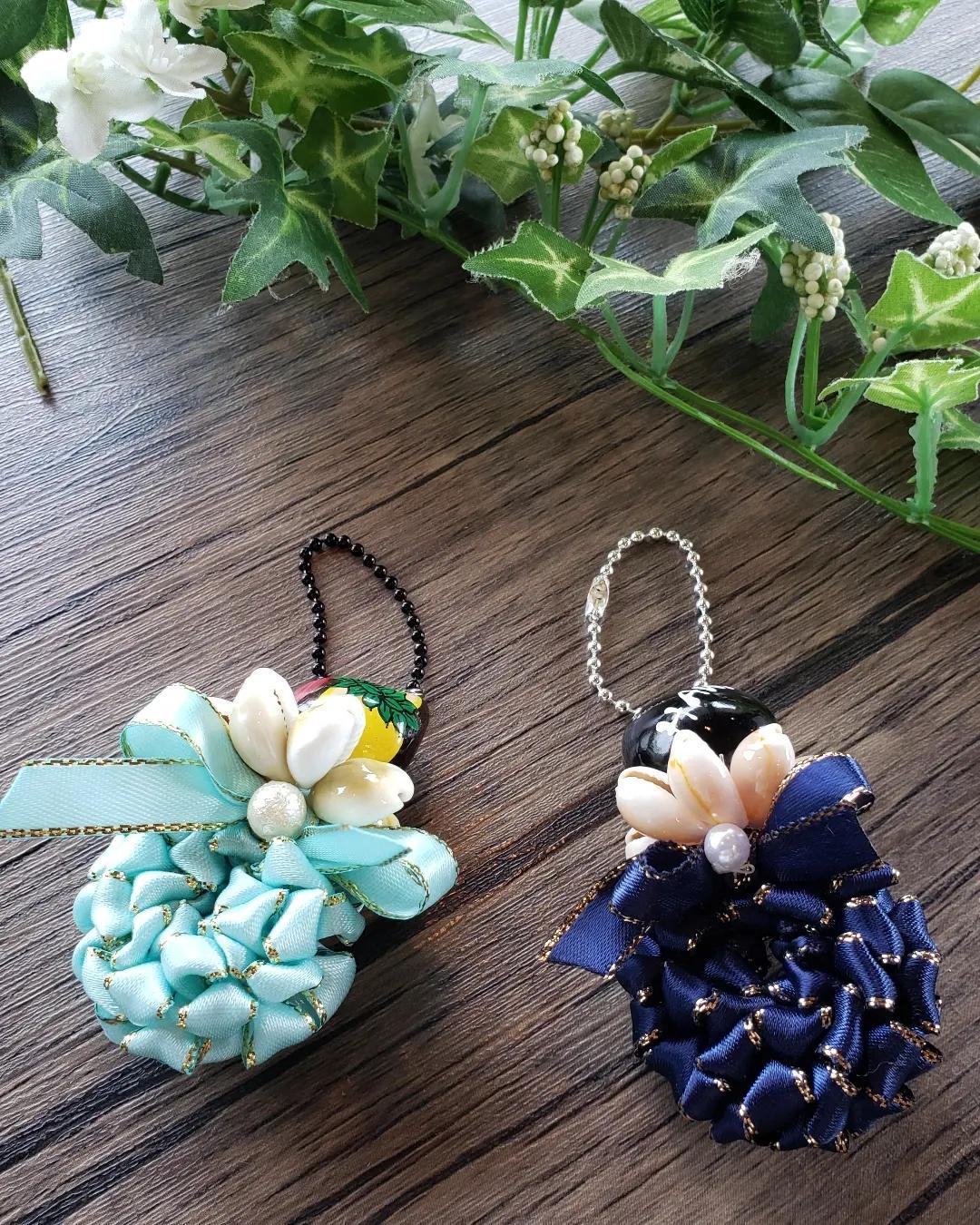 リボンに・・印を付けて縫うだけで可愛らしいチャームになるんです。