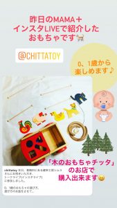 おもちゃコンサルタントマスターの資格を持つ、木のおもちゃやさん「チッタさん」こと、横尾泉さんを講師に迎え、年代別のおもちゃ選びを中心としたお話をインスタライブで配信します。