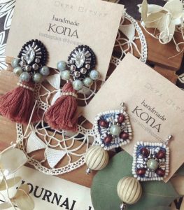 ビーズ刺繍アクセサリーのお店。丁寧な仕事で作られたイヤリングやピアスは、もうセンス抜群!!