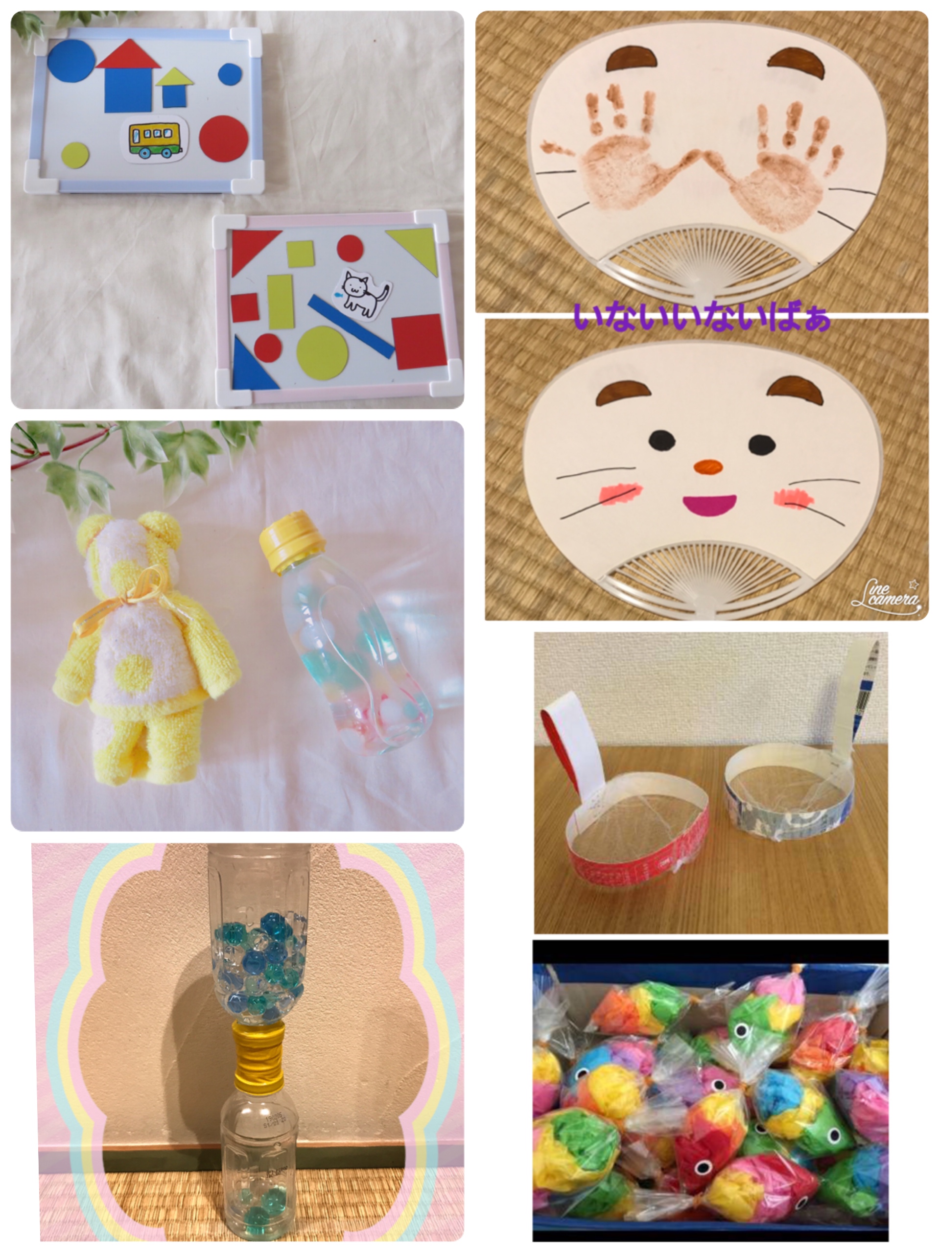 水遊び用お魚つり、ぷにぷにペットボトル、手形もとれるオリジナルうちわなど