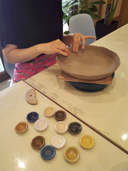 手ロクロを使って既定の量の土でお皿やカップなど