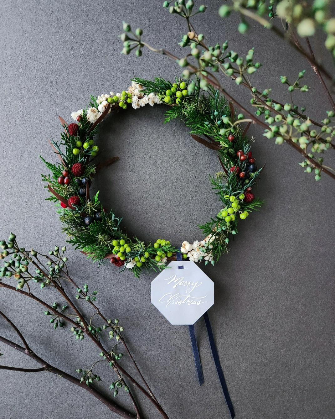 「空間を素敵に彩る色合わせのリース」をテーマにお洒落なクリスマスリースを