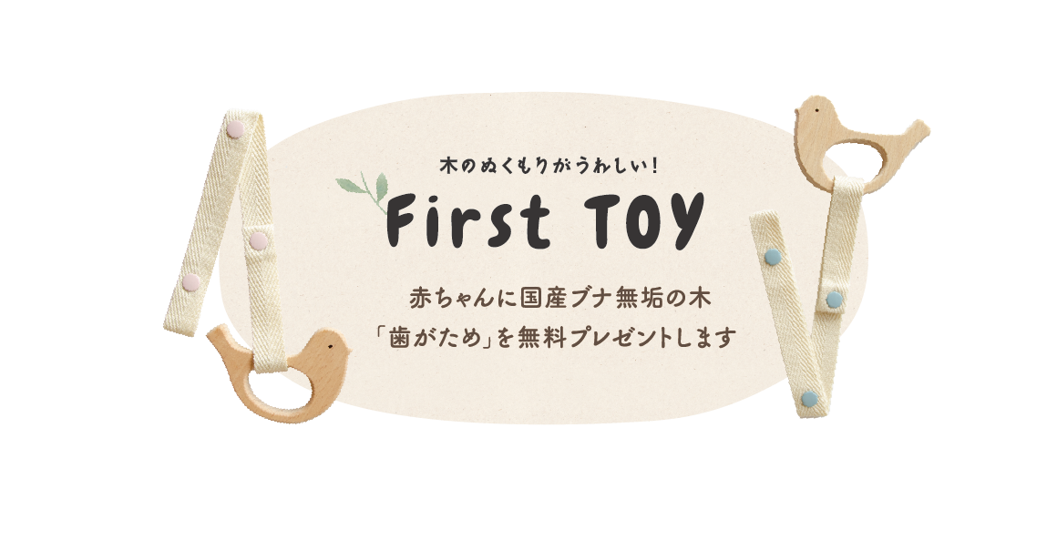 赤ちゃんに国産の木の「歯固め」を無料プレゼント致します!