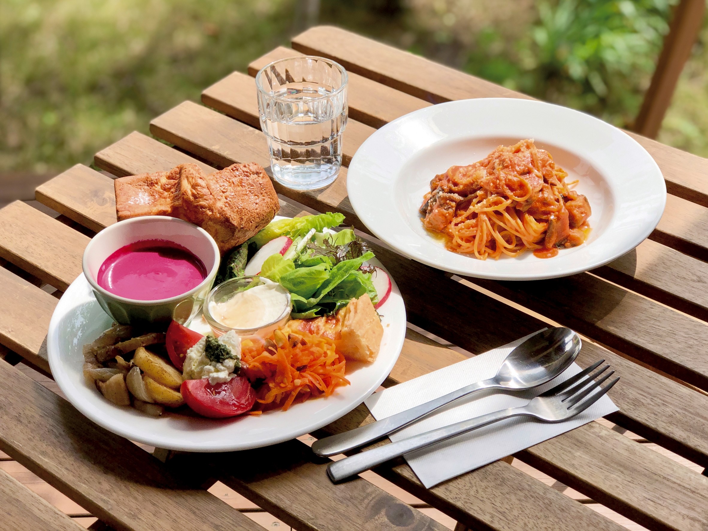 ポップオーバーとスープのデリサラダプレート