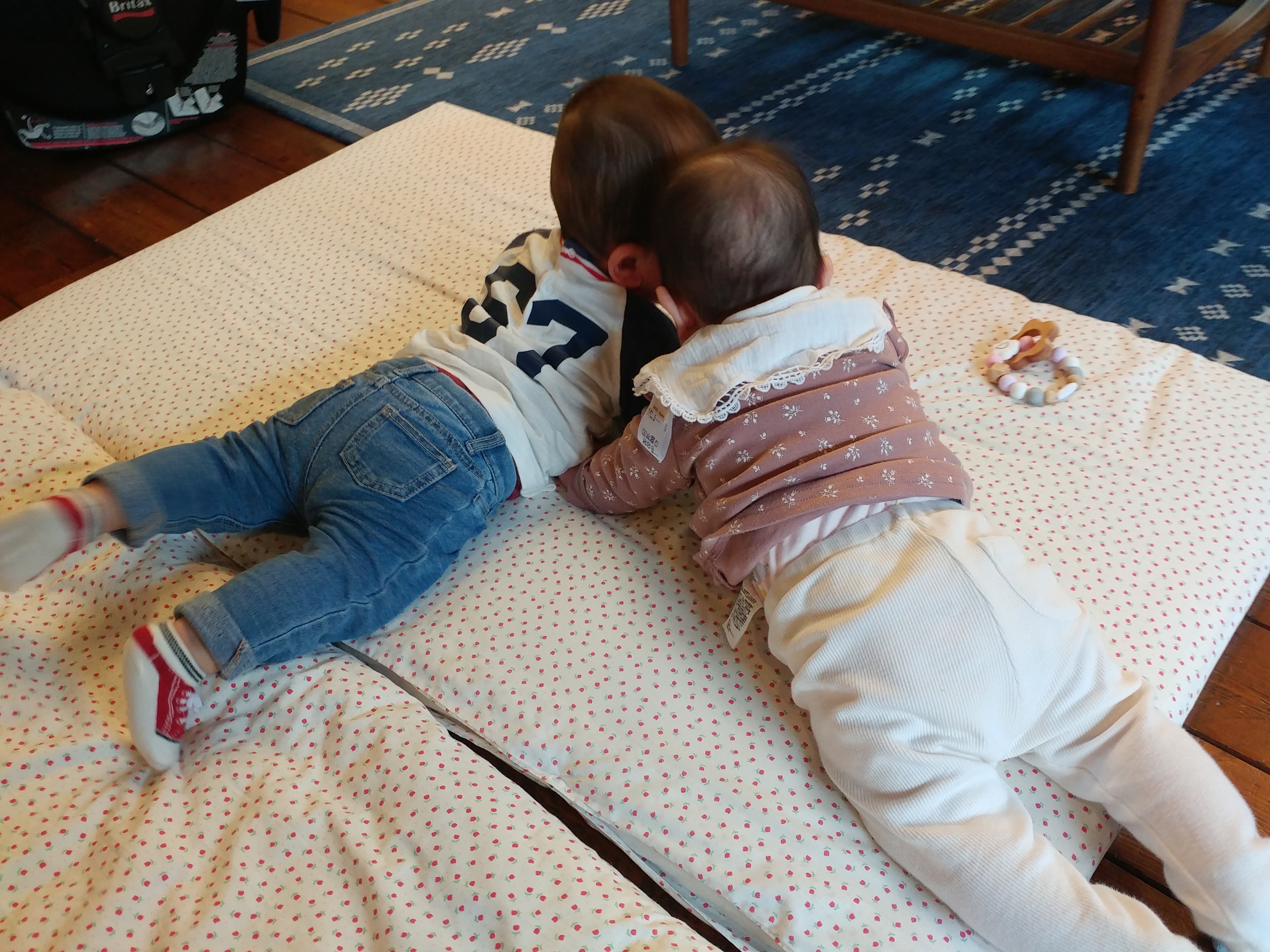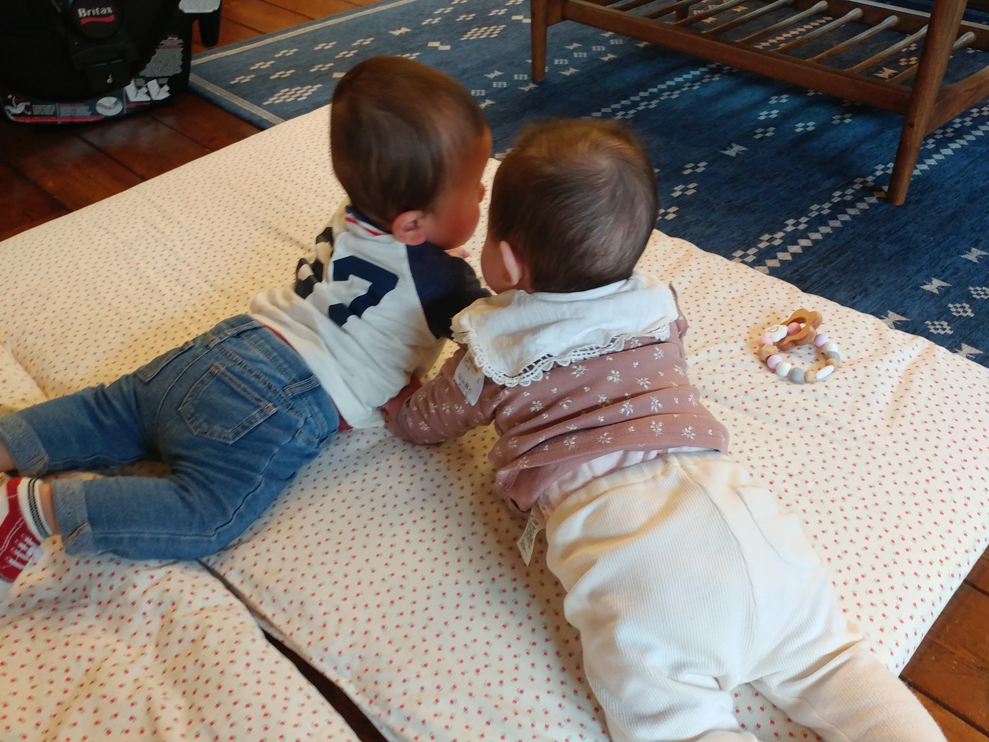 赤ちゃん同士にしかわからないお話を楽しんでいるようです。