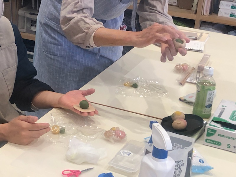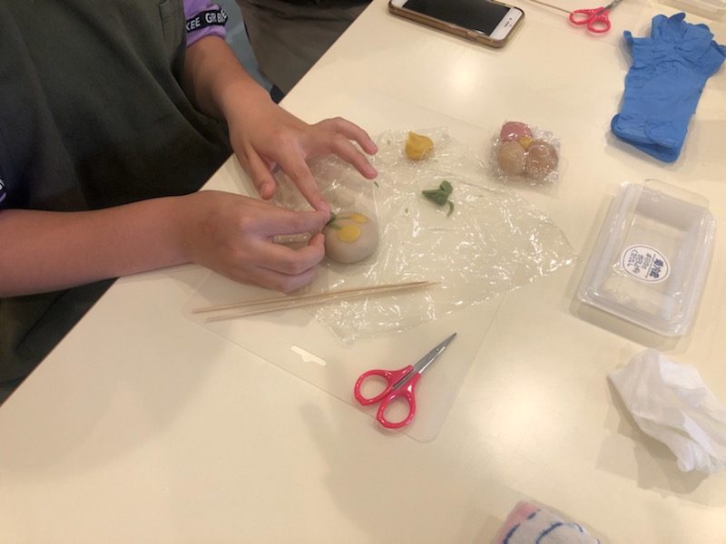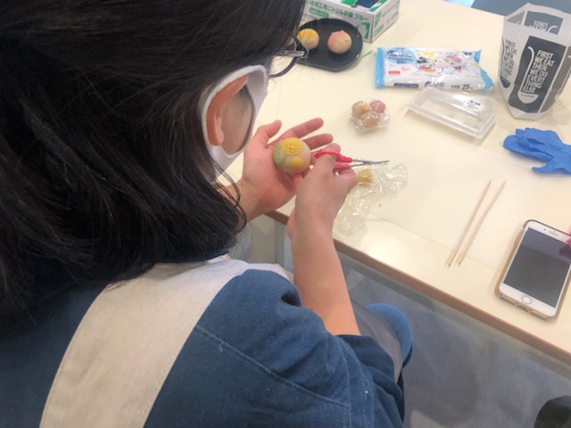 春にぴったりの蝶とタンポポの練り切り作りを体験されていました!