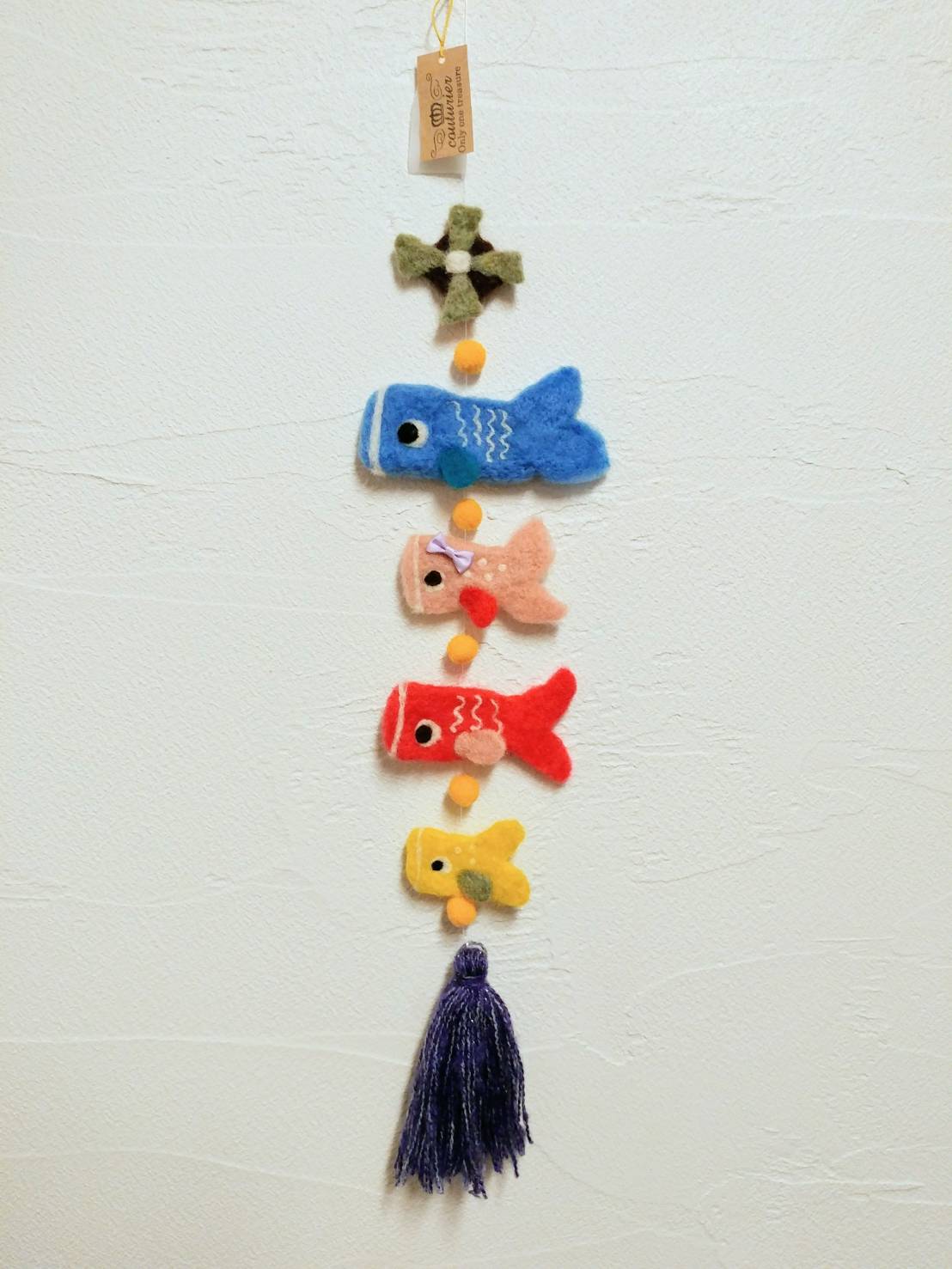 私は4匹目の制作と各鯉の模様、上に付けた風車は、仕上げの紐通しは自宅で制作しました!