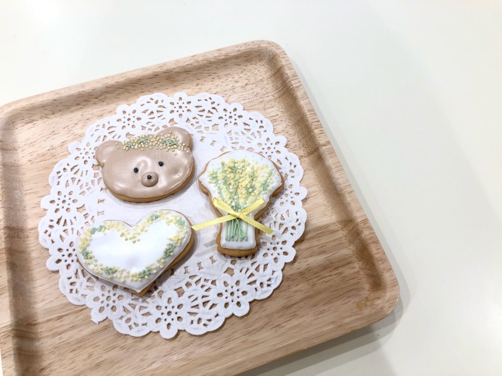 今回と同じミモザをテーマに3枚のクッキーを作成できます!