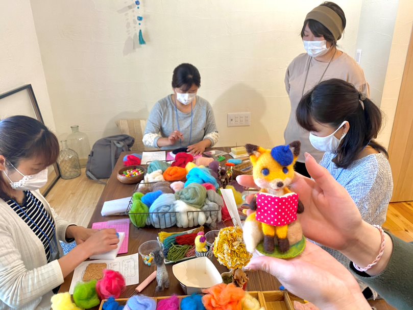 今回は羊毛フェルトの制作キットと材料を持ち帰りして作業できる内容となっており、わからないところは