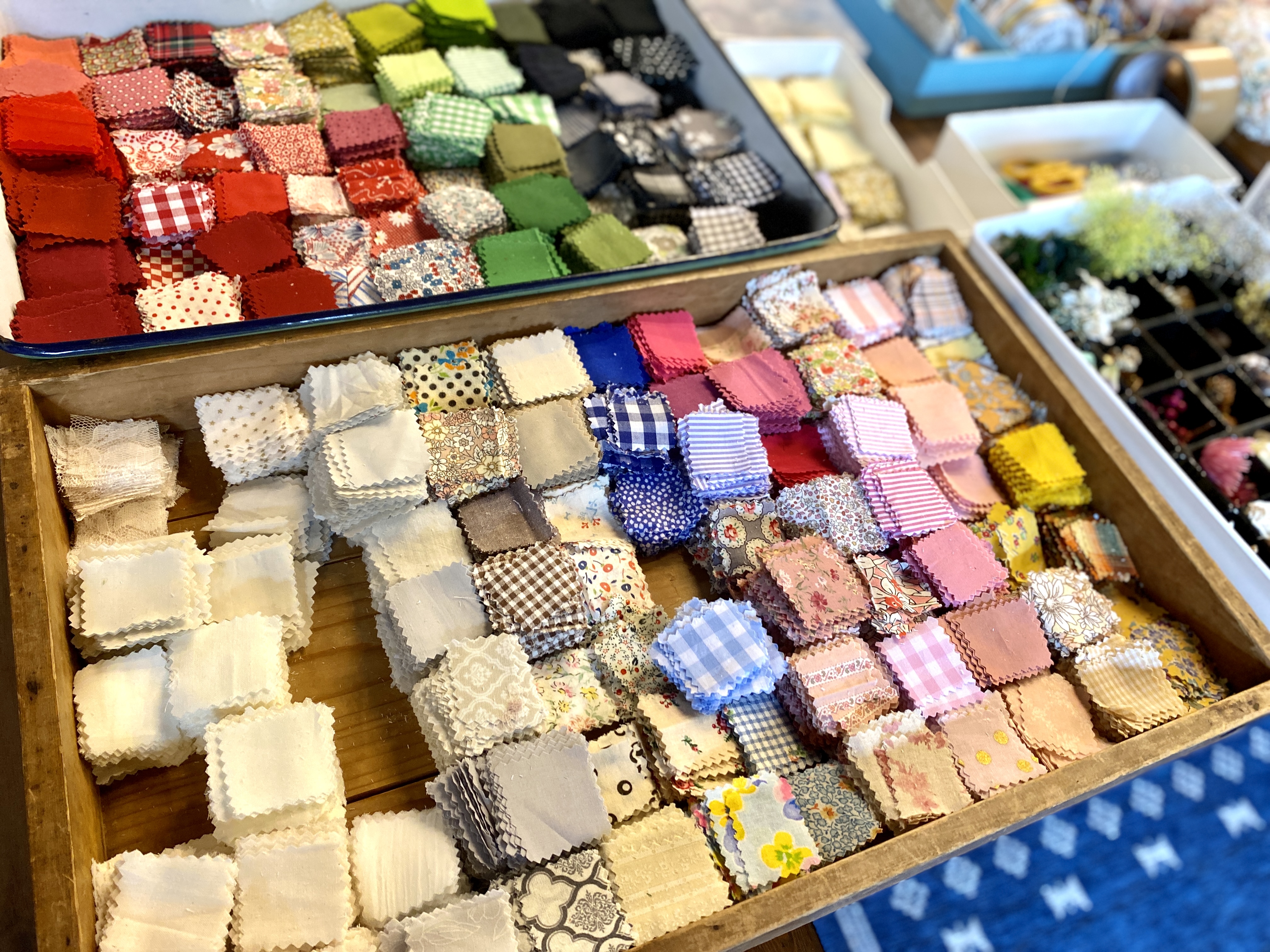 作るリースの大きさや、色は好みで自由に作成出来ます✨ どの布もとても素敵で悩んでしまうので、色合いや作りたいイメージを事前に決めて参加されると良いかもしれません。 可愛くて見てるだけでワクワクしますね(≧▽≦)