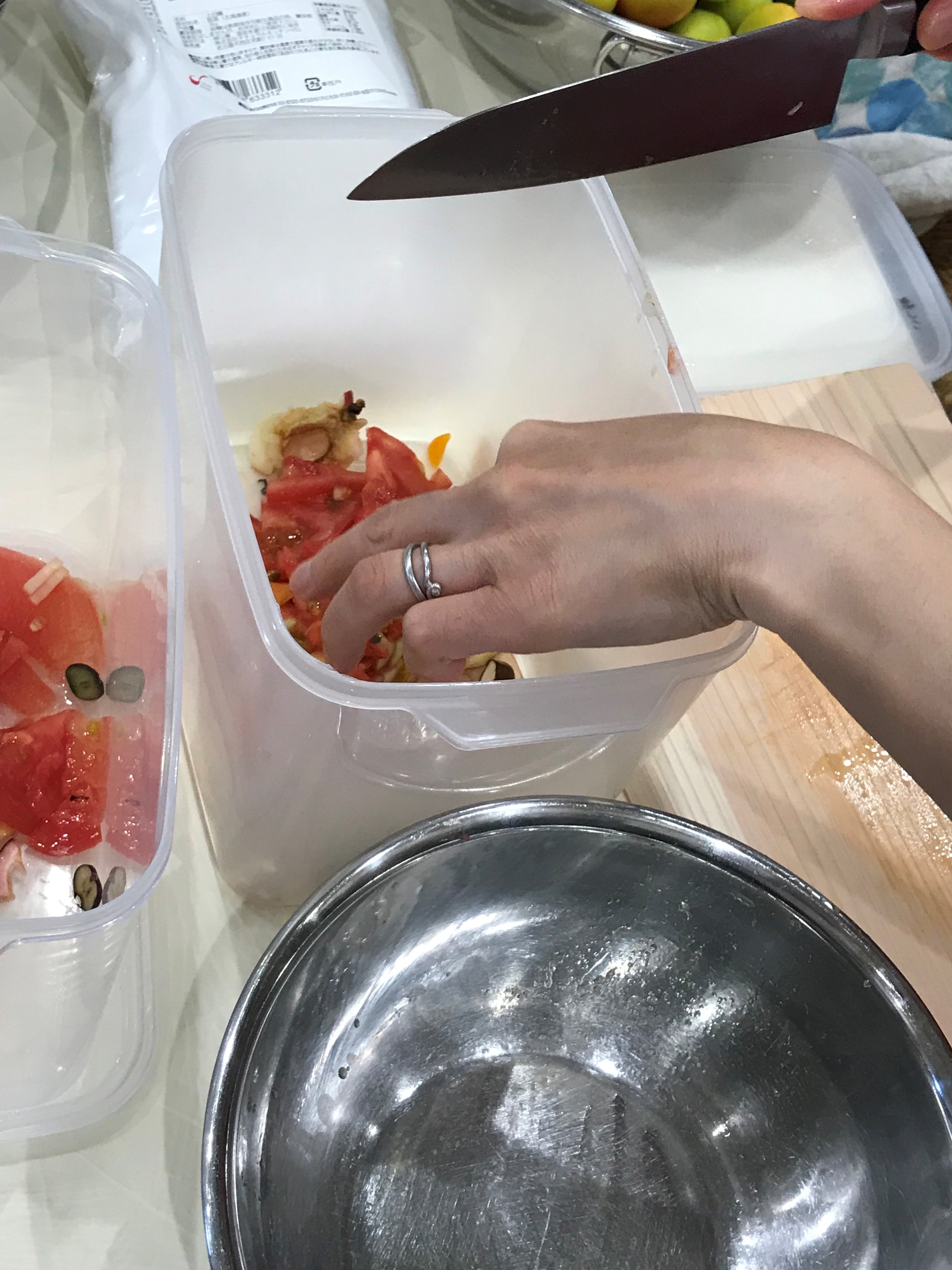 参加者様皆さんで協力して、材料を切っていきます。