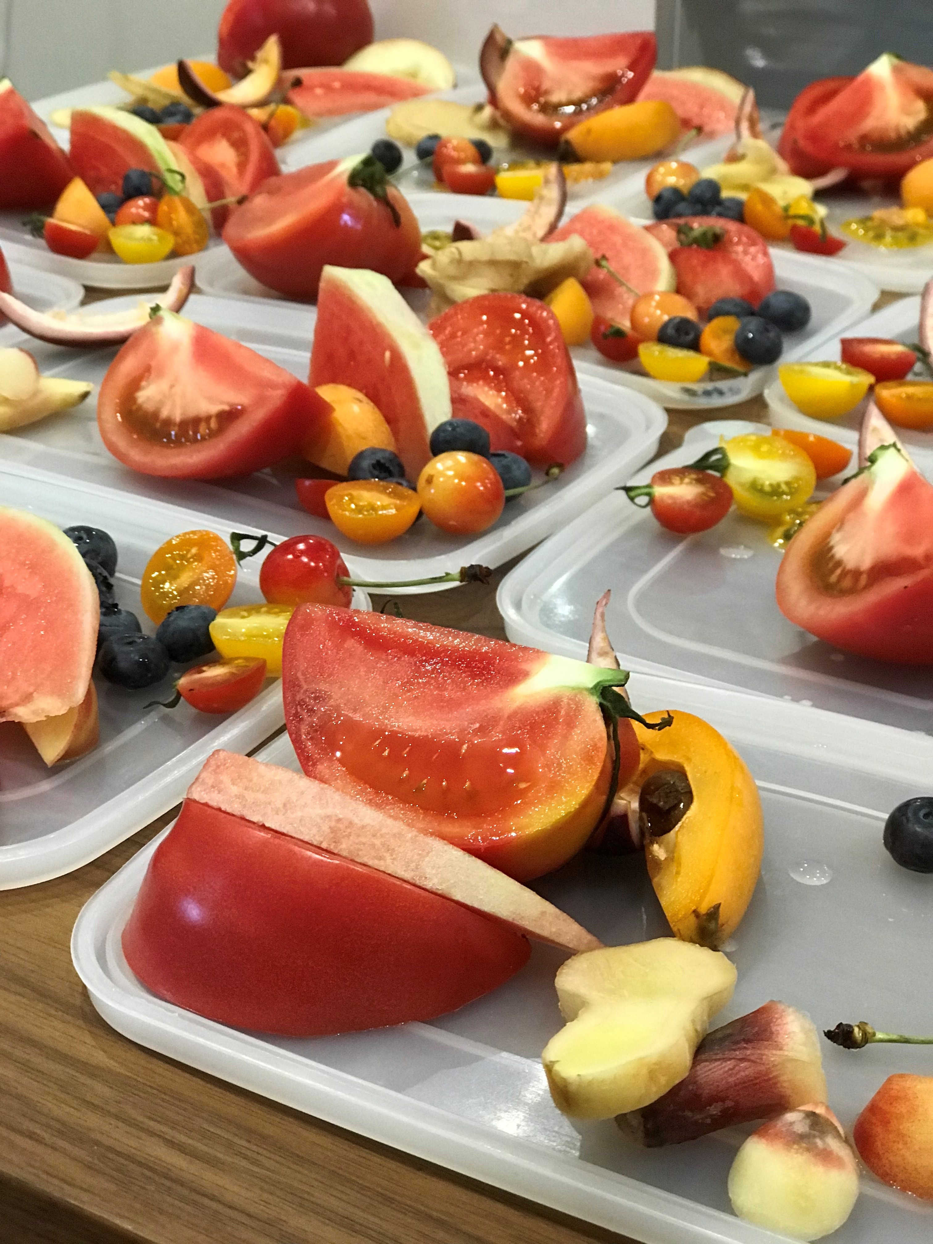 梅をベースに、トマト・桃・スイカ・サクランボなどが材料に使われます。