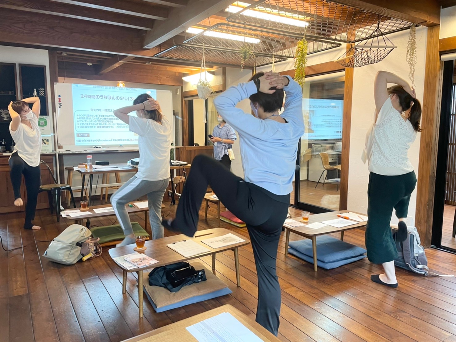 座学が終了したら、親子ですきま時間に出来るヨガを実践!