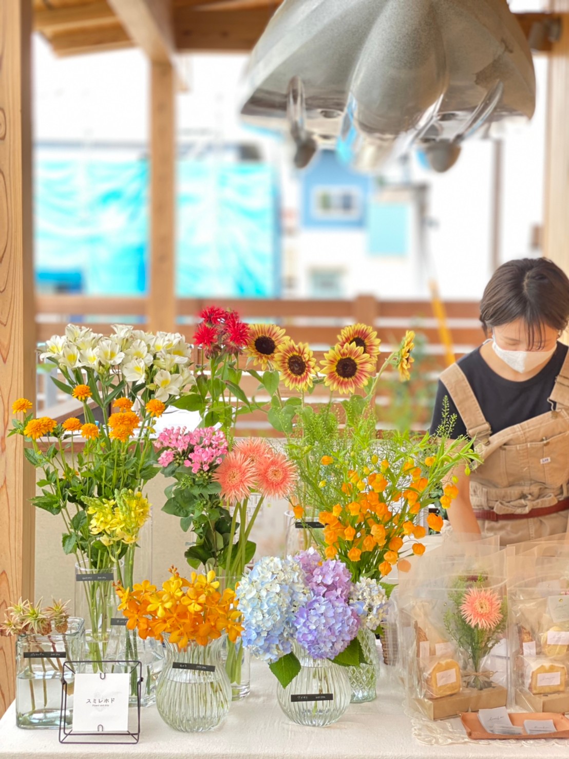 6/26-27、初出店いただきました☆ 元気が出るカラフルな季節の生花と、吉澤夏実さんのお花のポストカード、