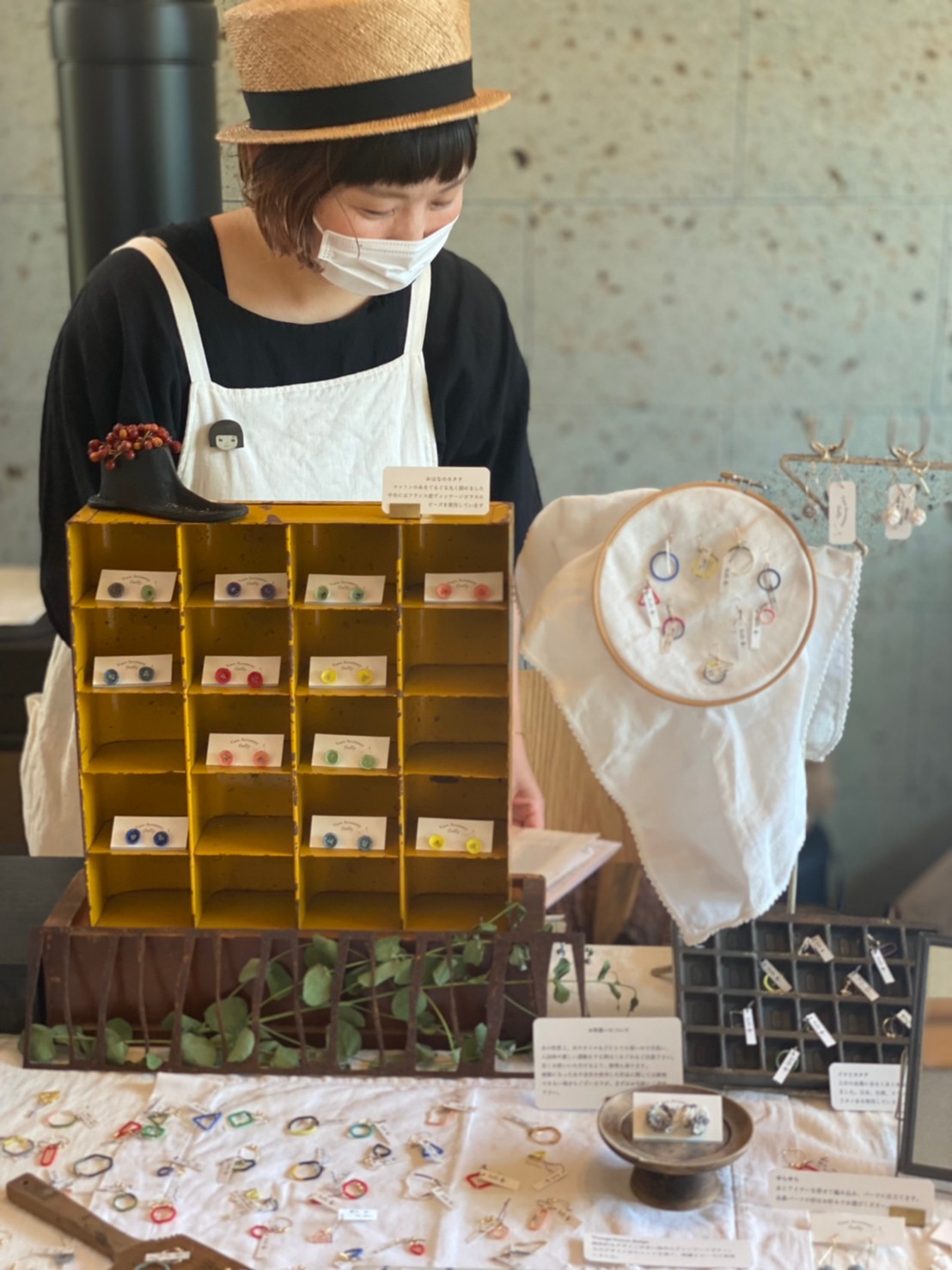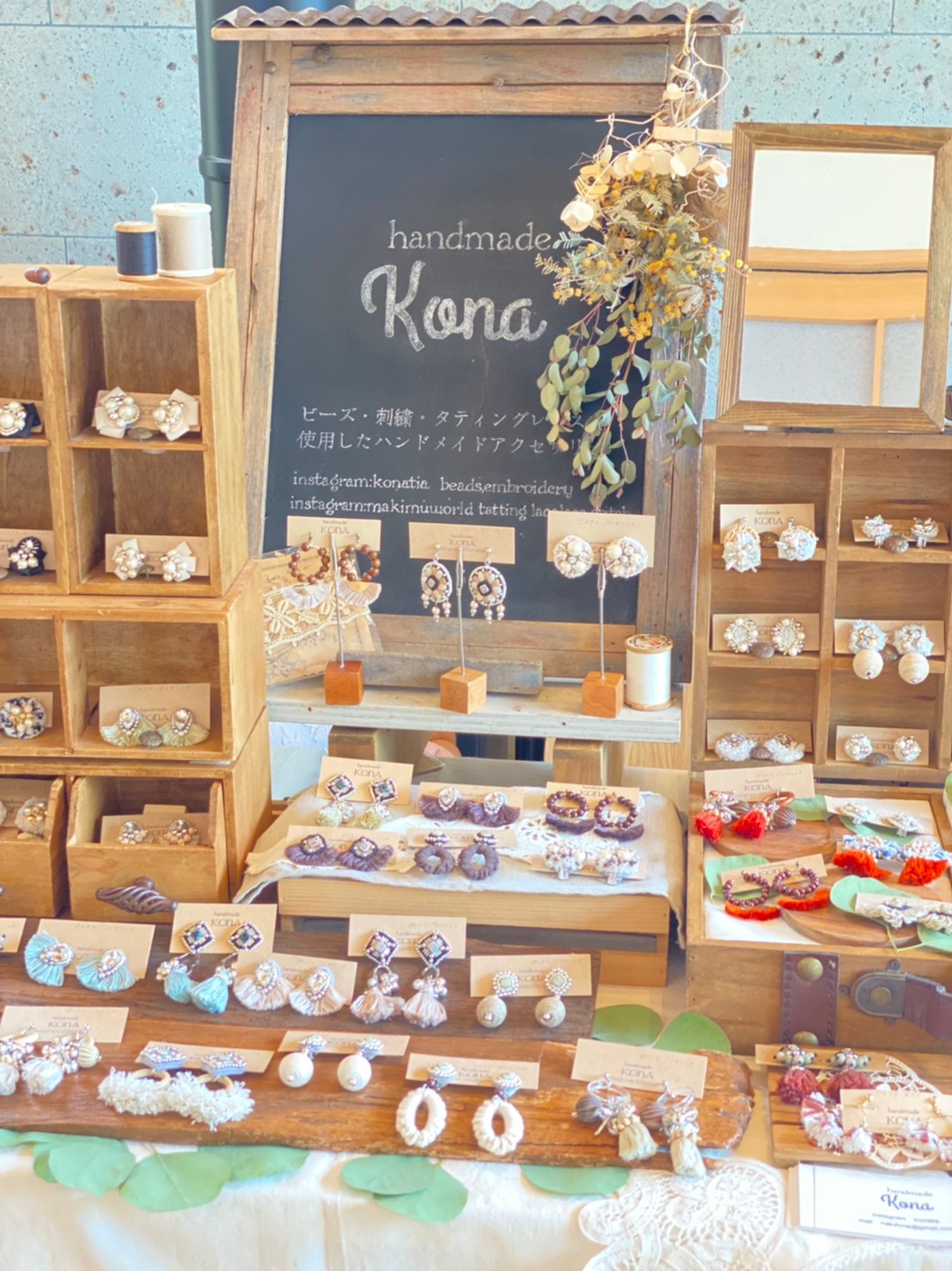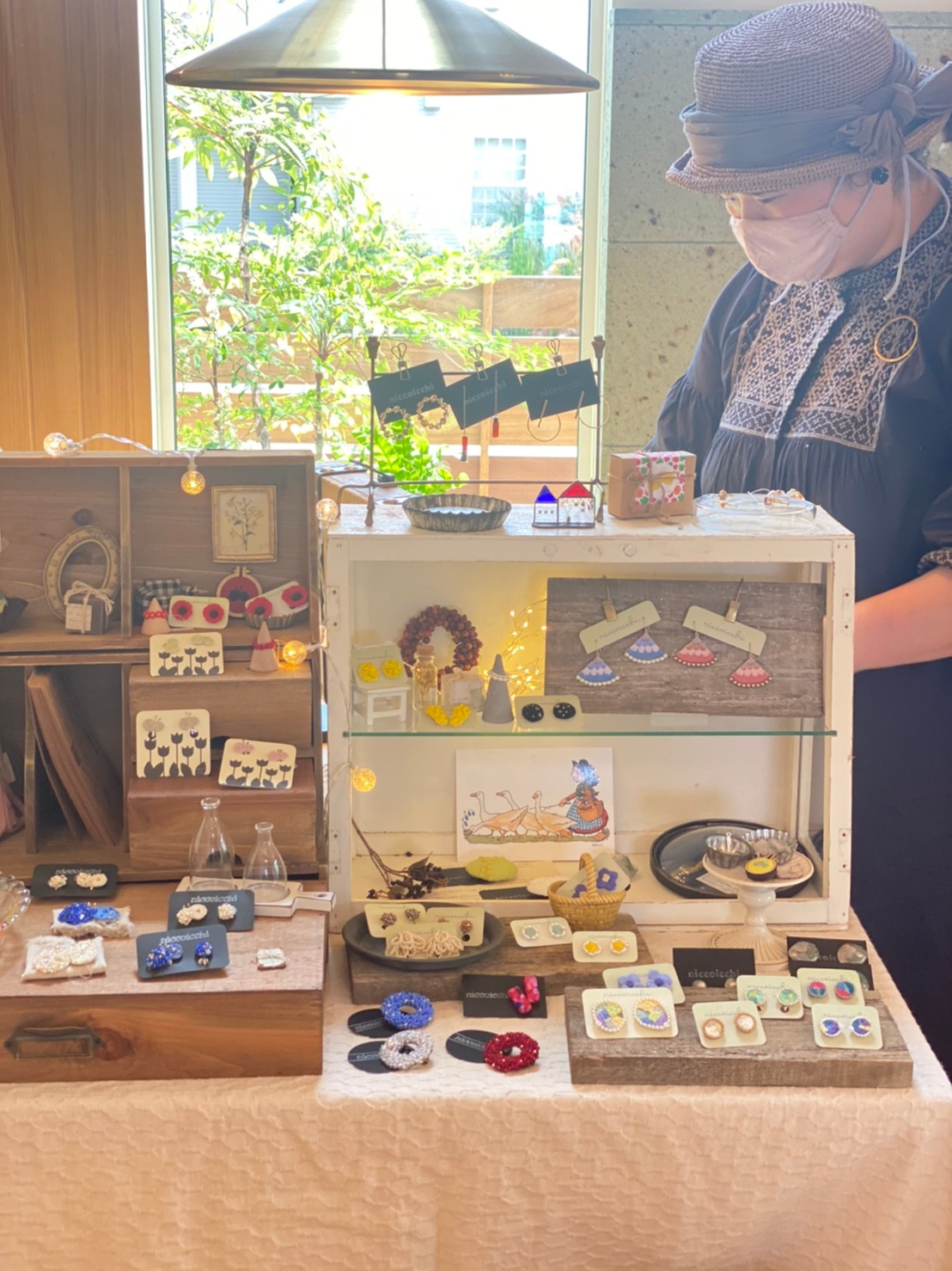 6/26-27、初出店いただきました☆ 刺繍やビーズ・レジンのアクセサリーのお店。購入時の包装まで可愛くご用意いただき、対面販売ならではの特別感に感謝です。