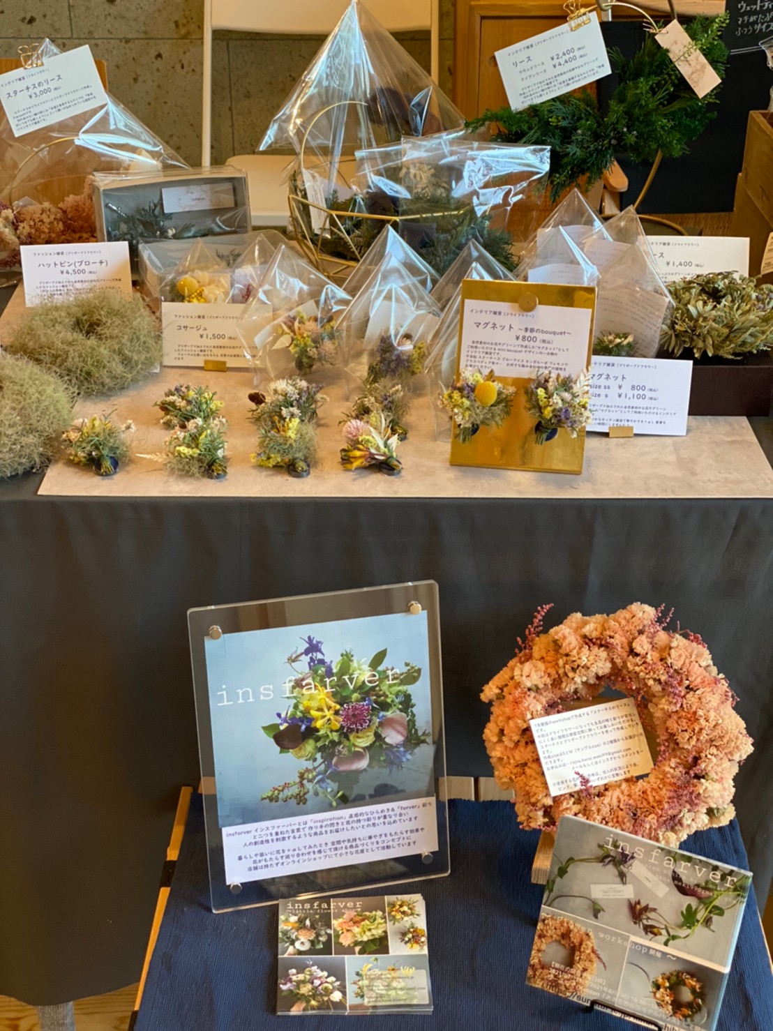 6/27-29ご出店。お家のアクセントになりそうな鮮やかなグリーンのリースや、ドライフラワーのマグネットはどれも表情が違って迷ってしまう素敵さでした♡
