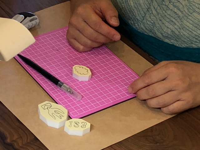 消しゴムにデザインを転写して