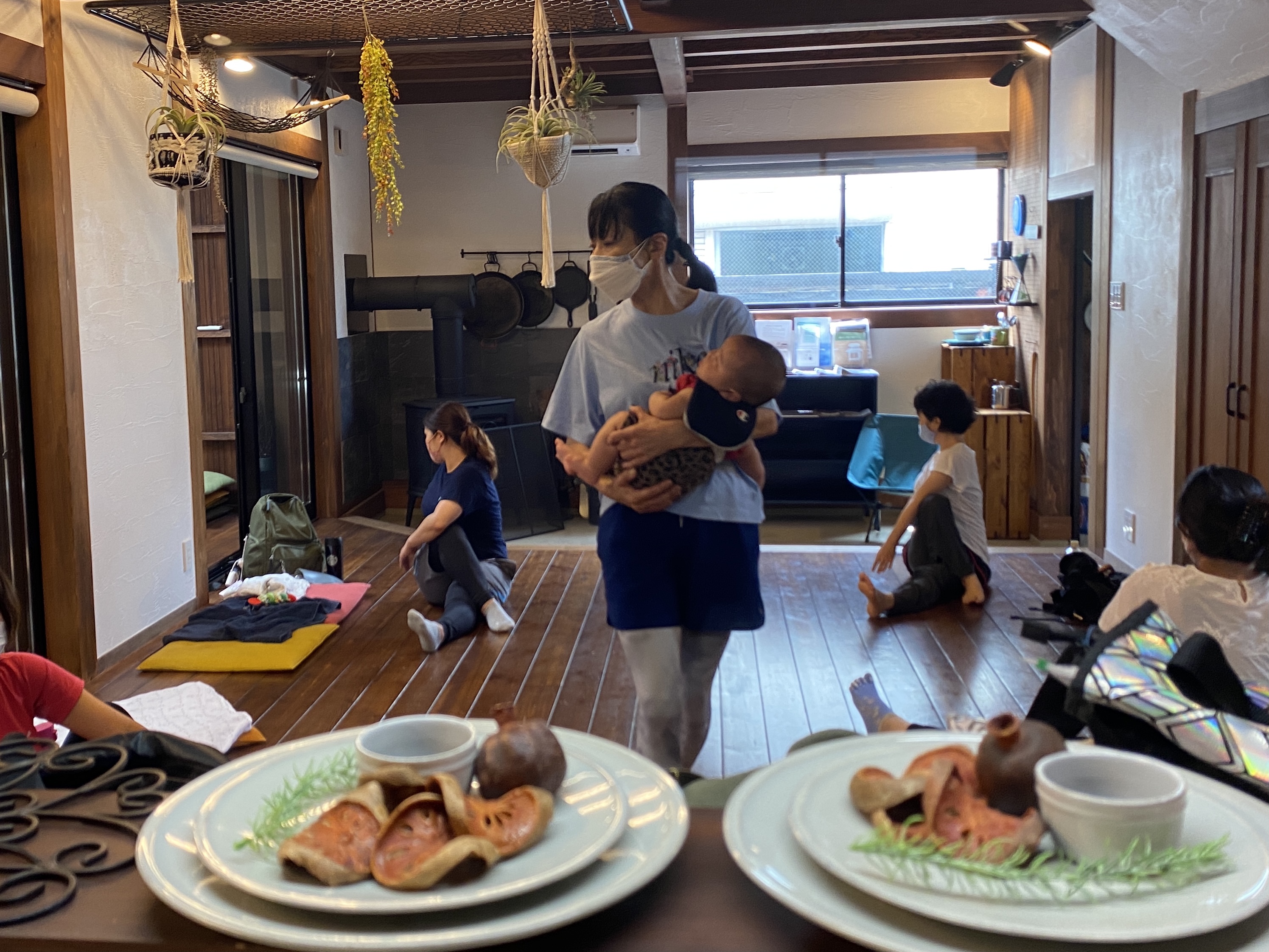 4ヶ月以上で首がすわると2階でシッターさんに預けて参加出来ます(*^-^*)この日も2階は2組の兄弟の託児がありました✨