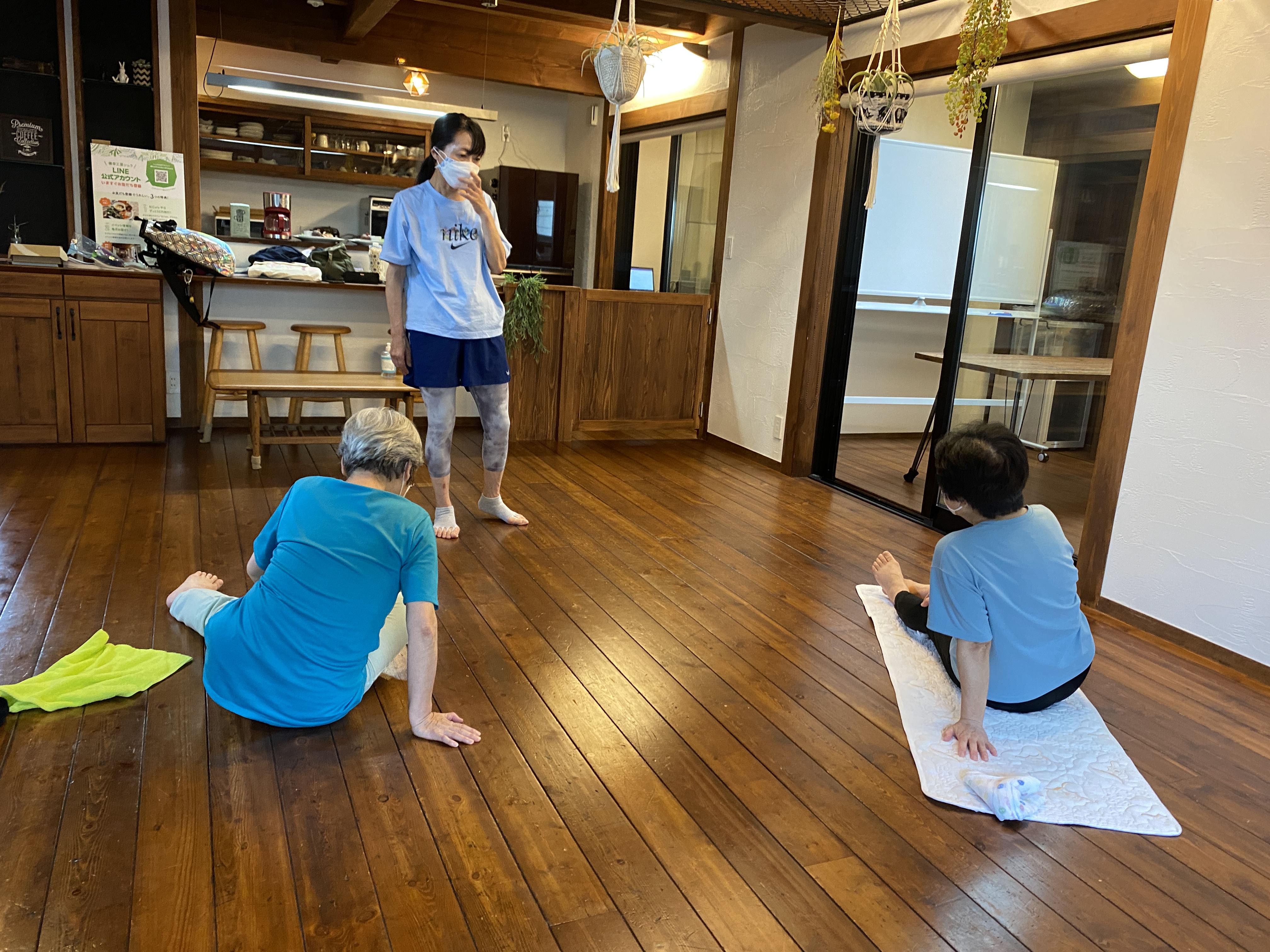 辛いときも頑張れーと原さんが応援してくれるので、いつも終始皆さん楽しそうにストレッチされています♪