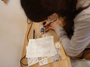 下書きが出来たかたから順に、電熱ペンの使い方の説明を受けます。