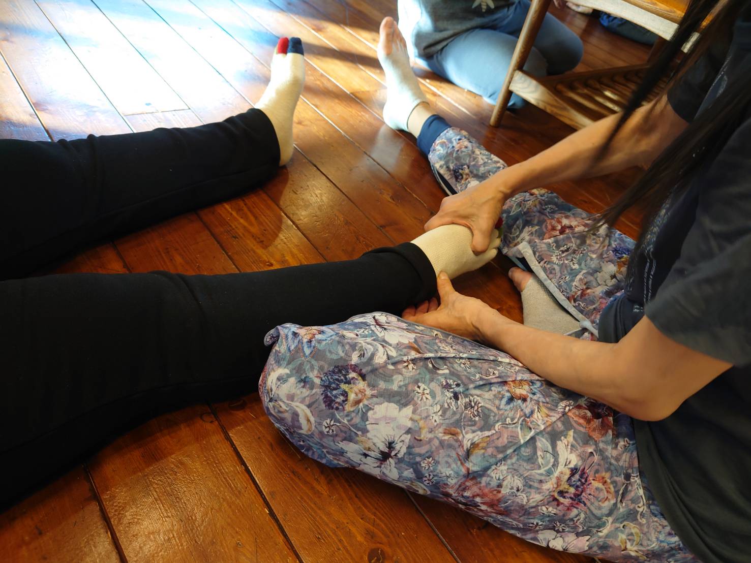 肩が上がらなかったり、足に痛みが出ていた参加者さんを先生がほぐしてくれたり、