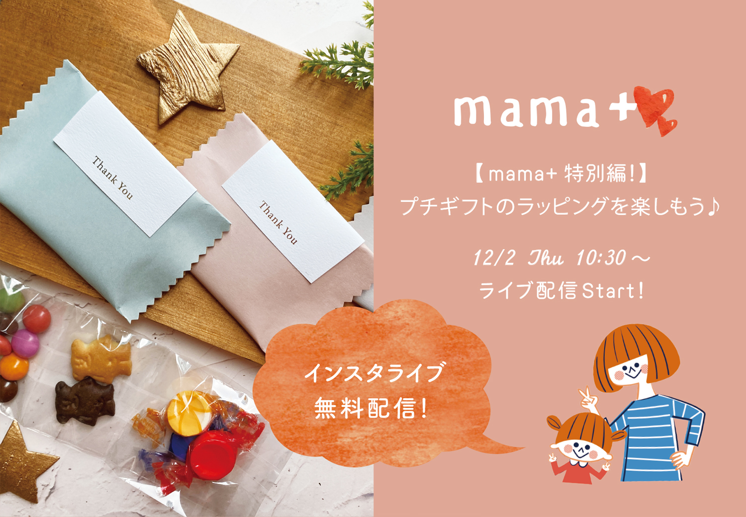 12月はもうひとつmama+特別編で「プチギフト」をテーマにしたインスタライブを開催いたします❣