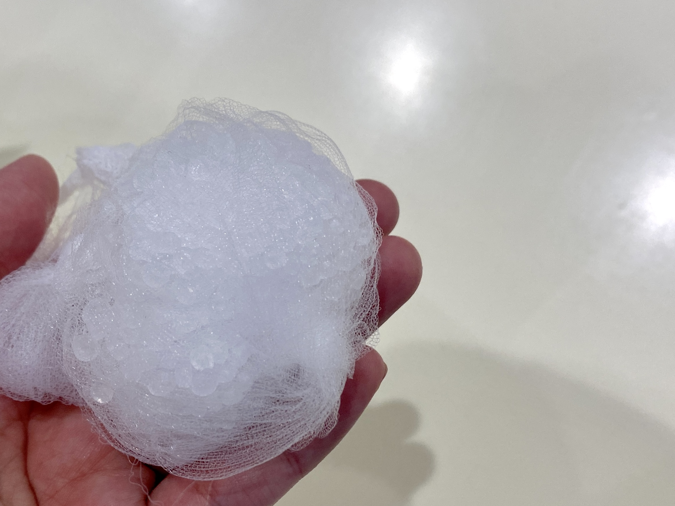 今回のお手玉の中身は手芸用ペレットを入れていました。