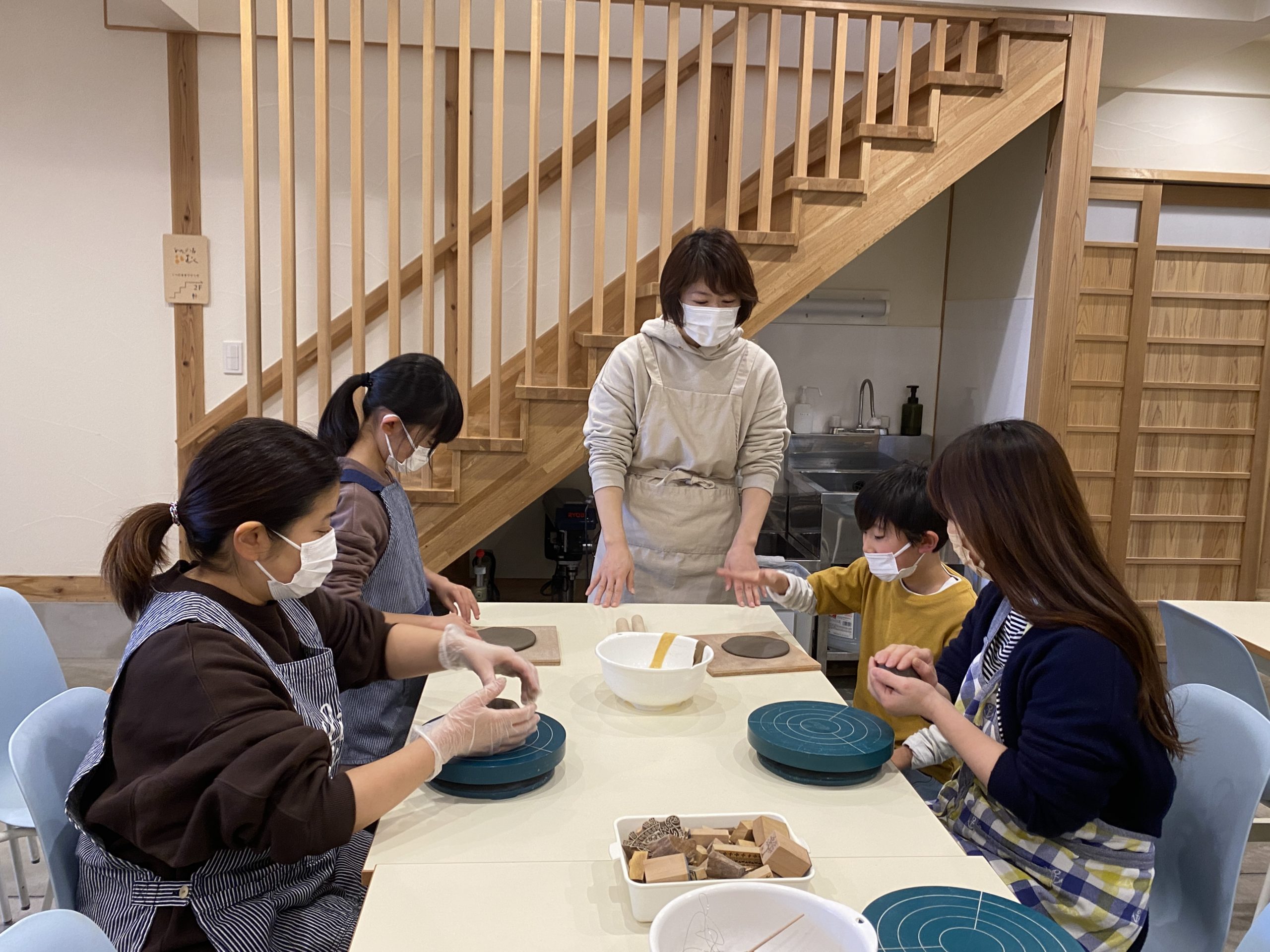 この後は先生が自宅の工房に持ち帰り、作品の削り仕上げ、釉薬掛けをし、乾燥、窯での焼成の後作品をお渡しとなります!
