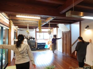 凝り固まった筋肉をほぐし、姿勢を整えるストレッチを教わっていました。