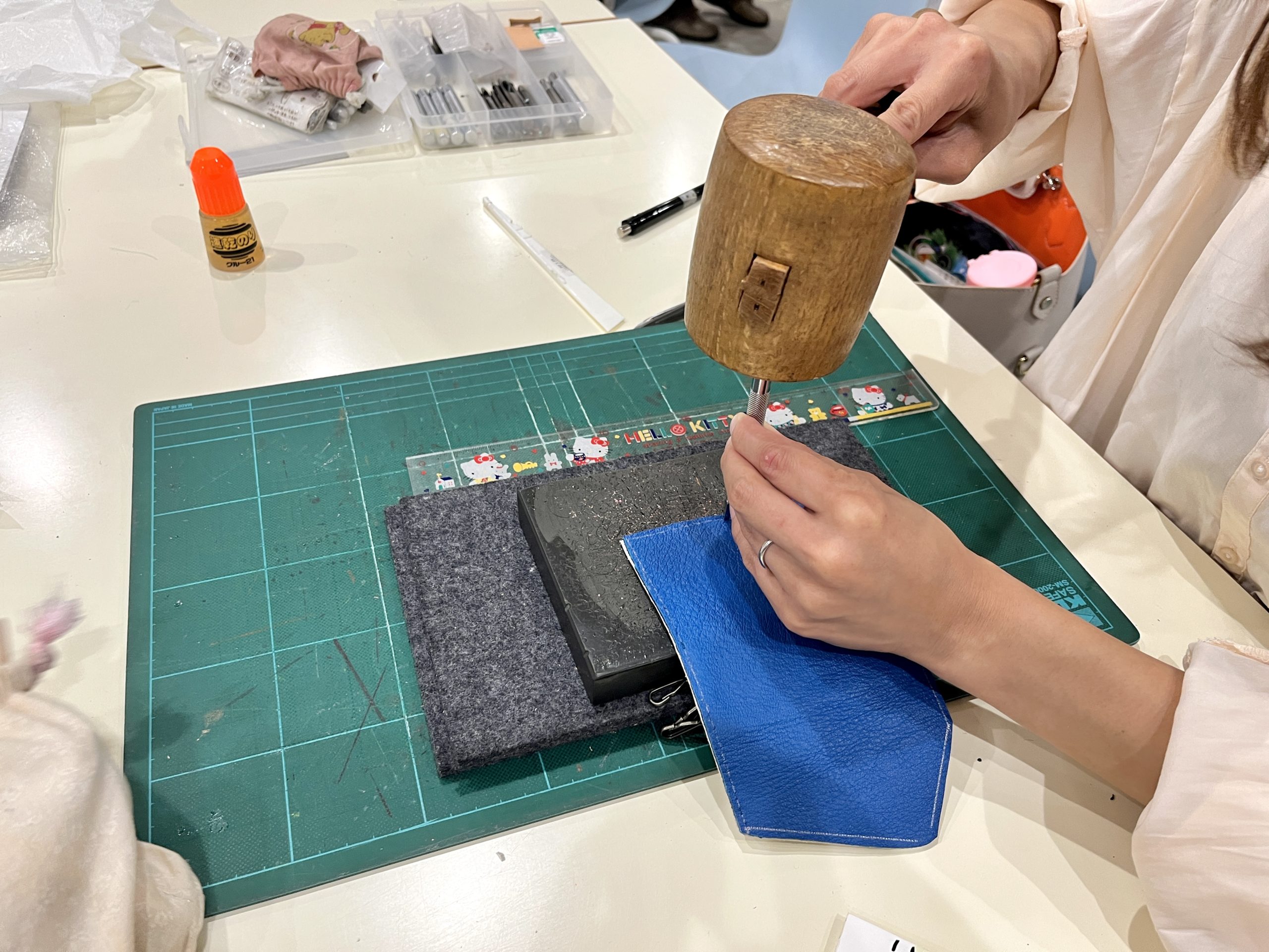 皆さんそれぞれの革小物を作っています!(^^)!