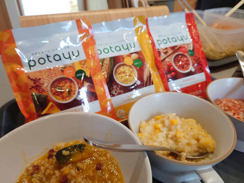 また、無添加調理の石井食品さんから取り寄せた「野菜のおかゆpotayu」も