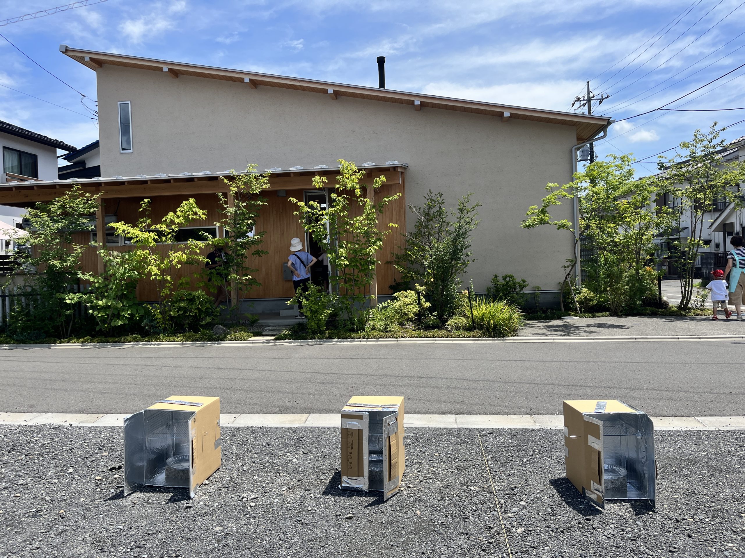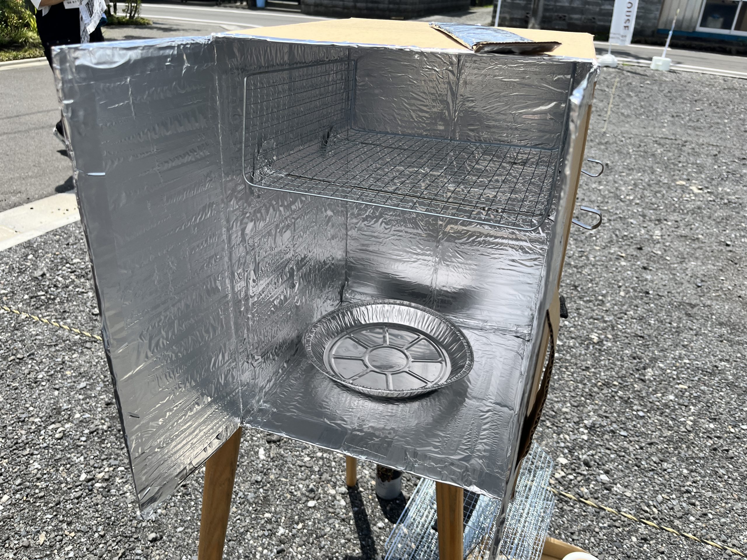 こちらがお手本のダンボールピザ窯! 皆さんにまずはダンボールでピザ窯を作っていただきました。