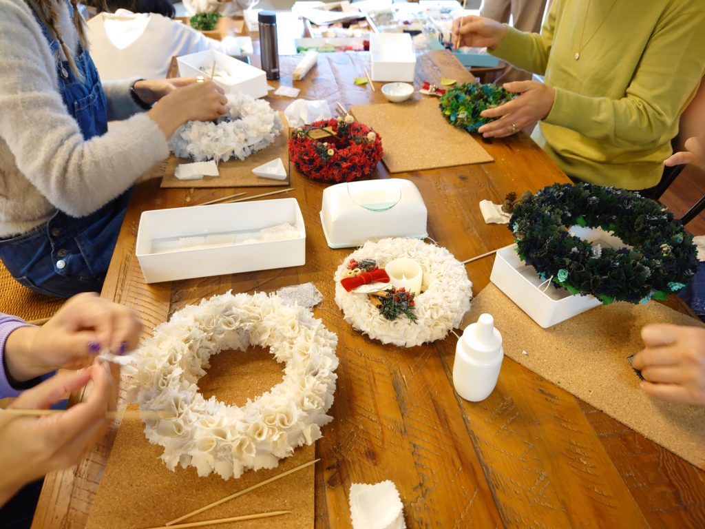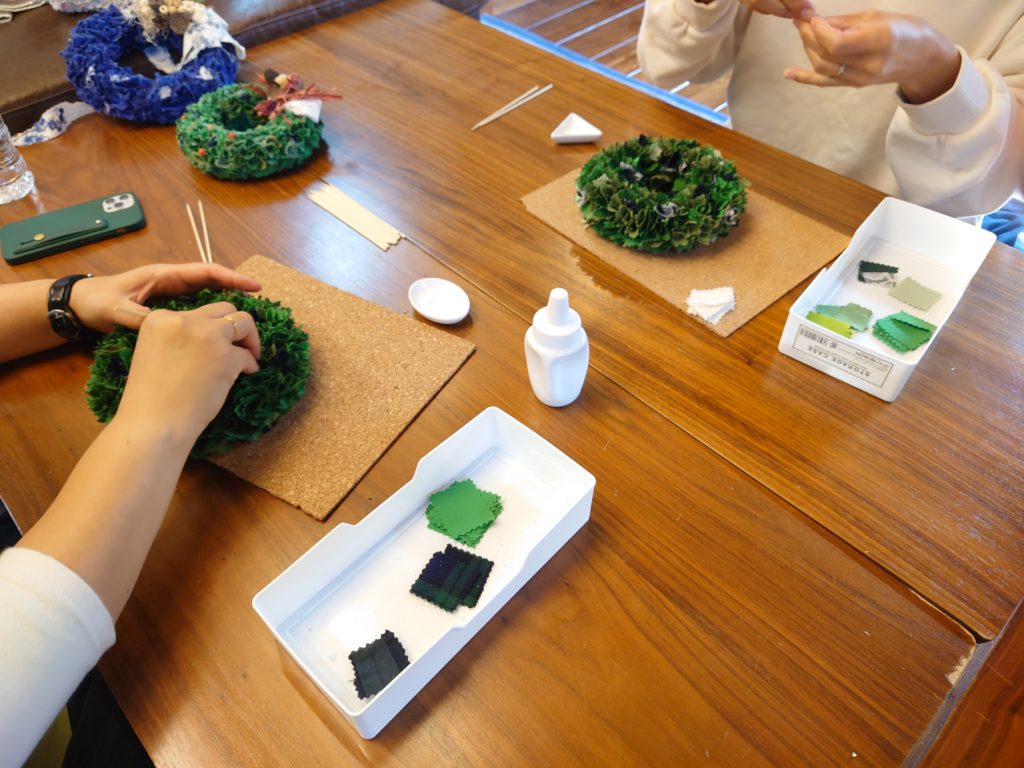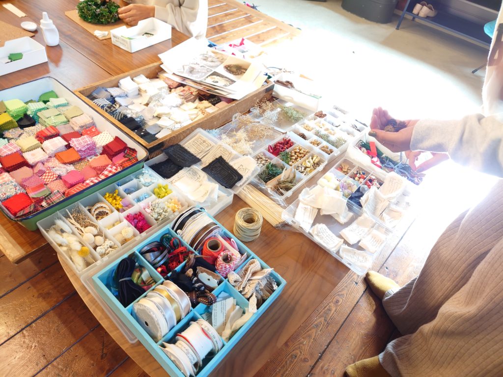 今日は、大人気ワークショップichirikoさんの布リースづくりの日です。