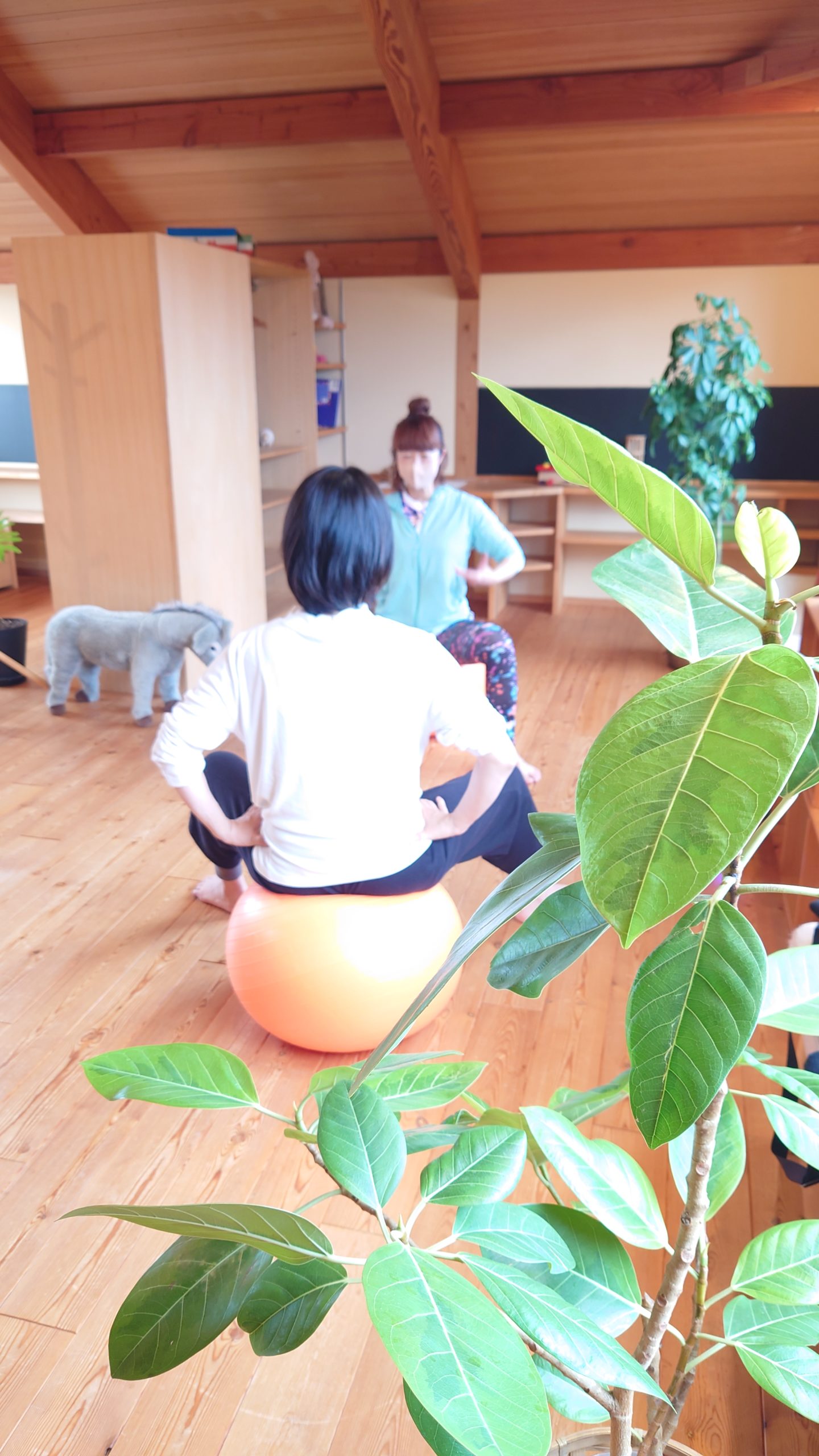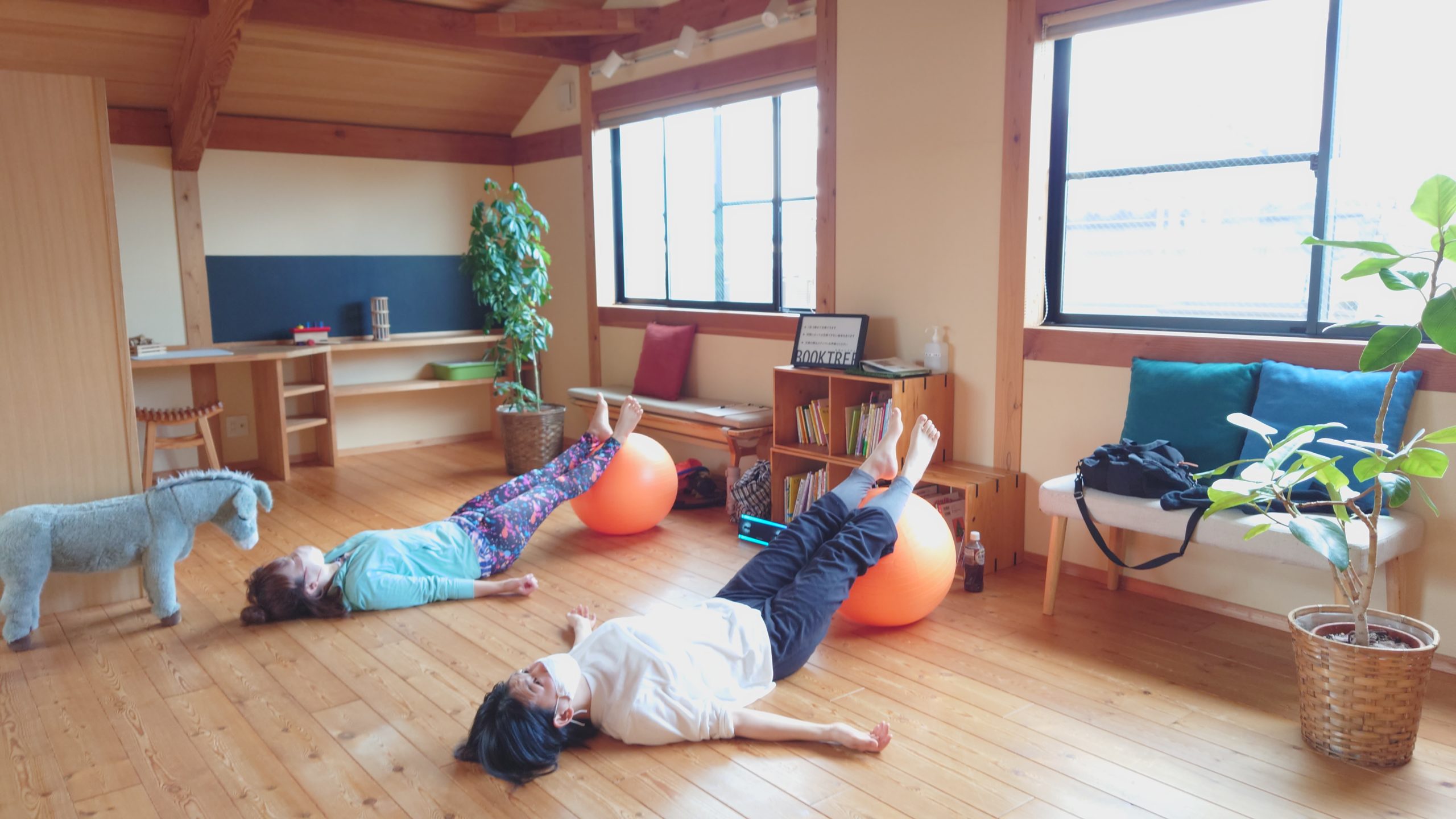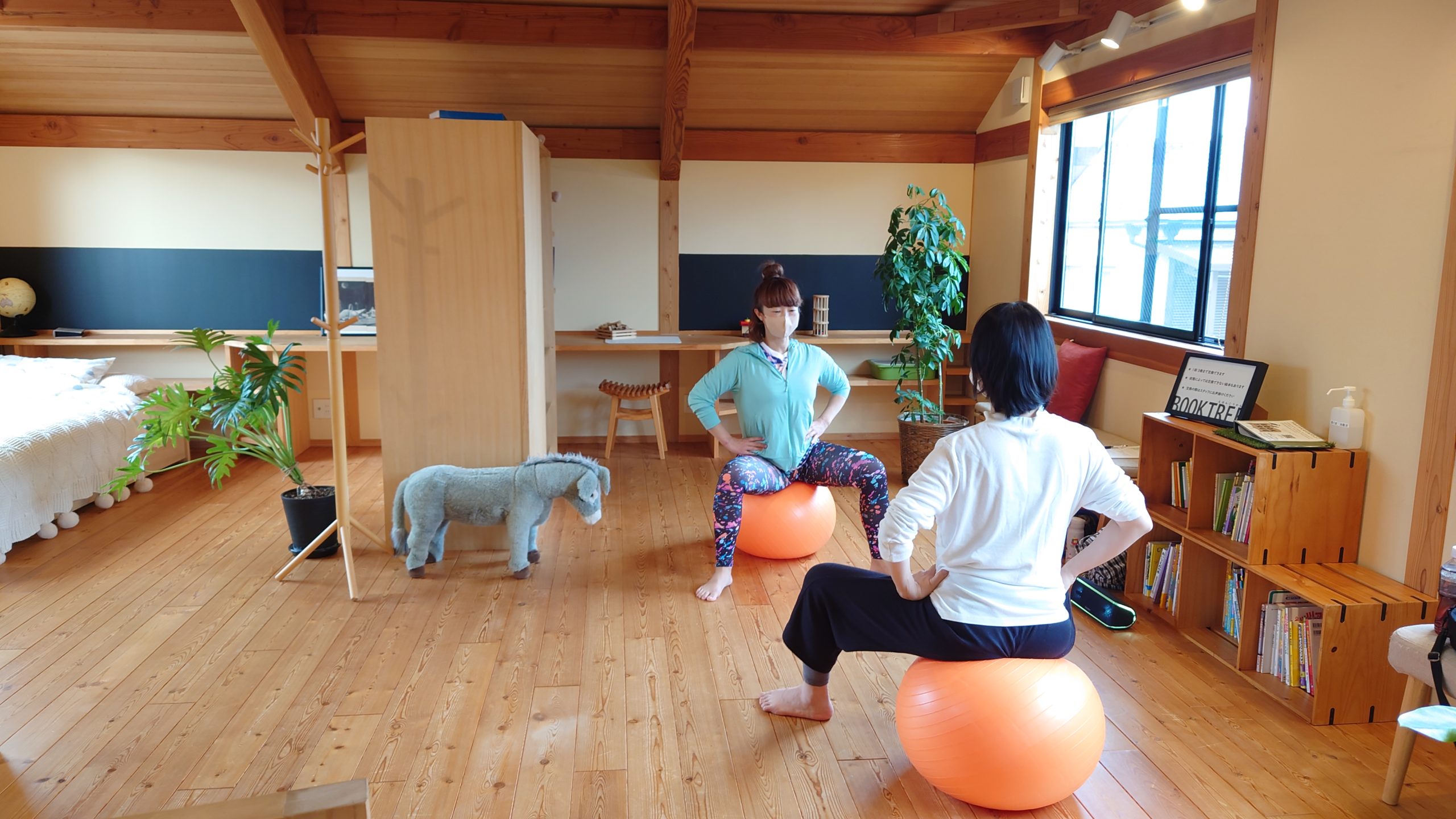 座った状態でボールを弾ませたり、姿勢をキープしながら