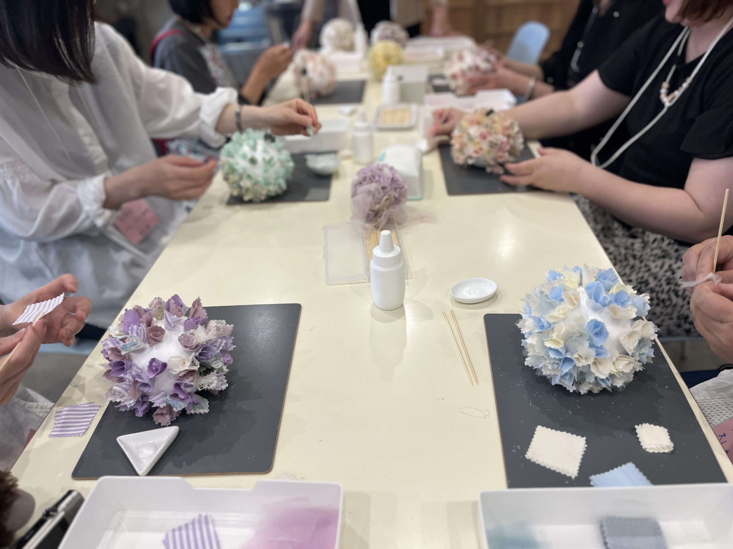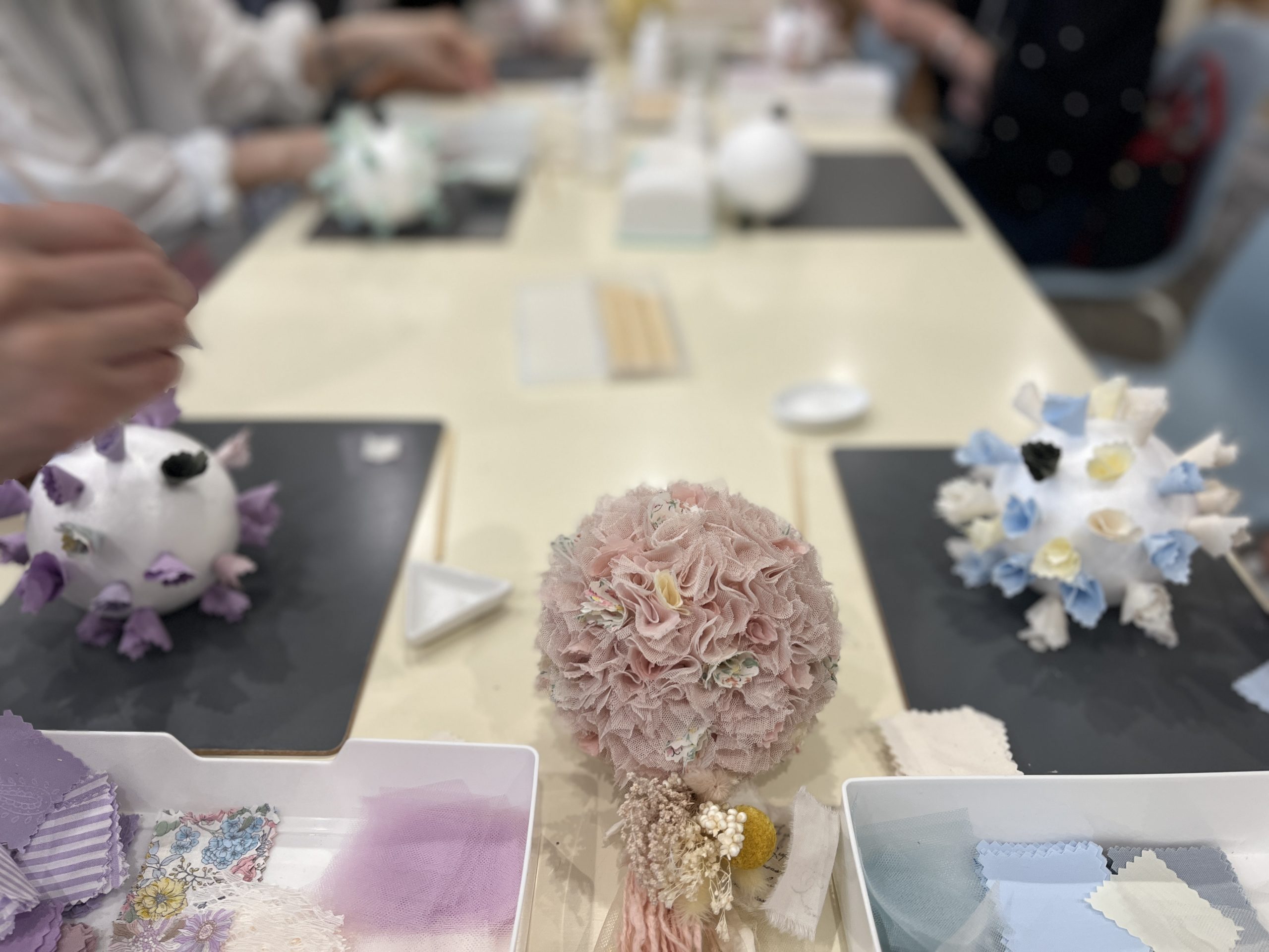 今回はmama+ということで、特別にチュールを多めに用意していただきました(*^-^*) 布リースを前に作ったことがあるけど、まん丸も作ってみたくて参加しましたというリピーターさまも参加されていました。