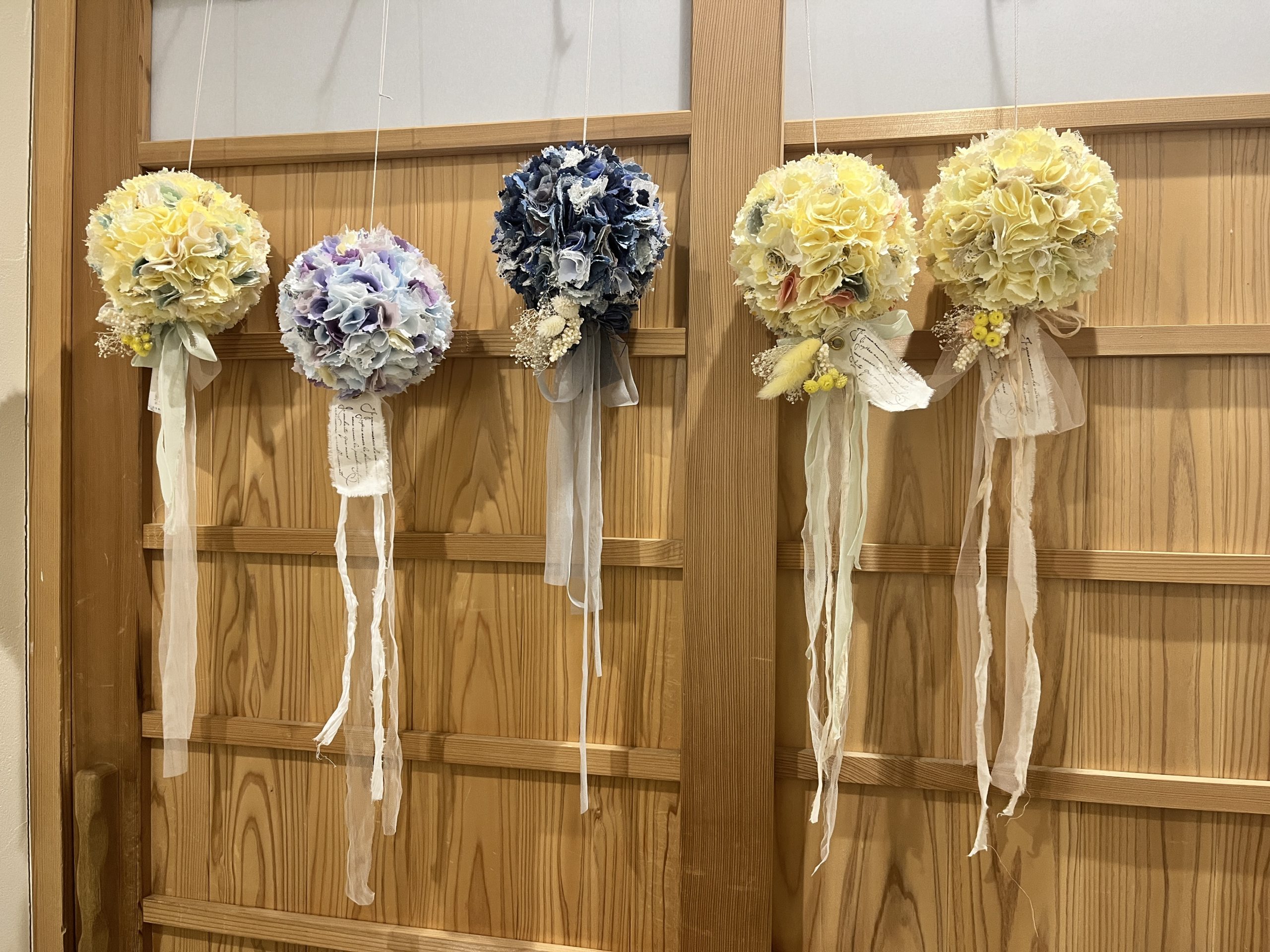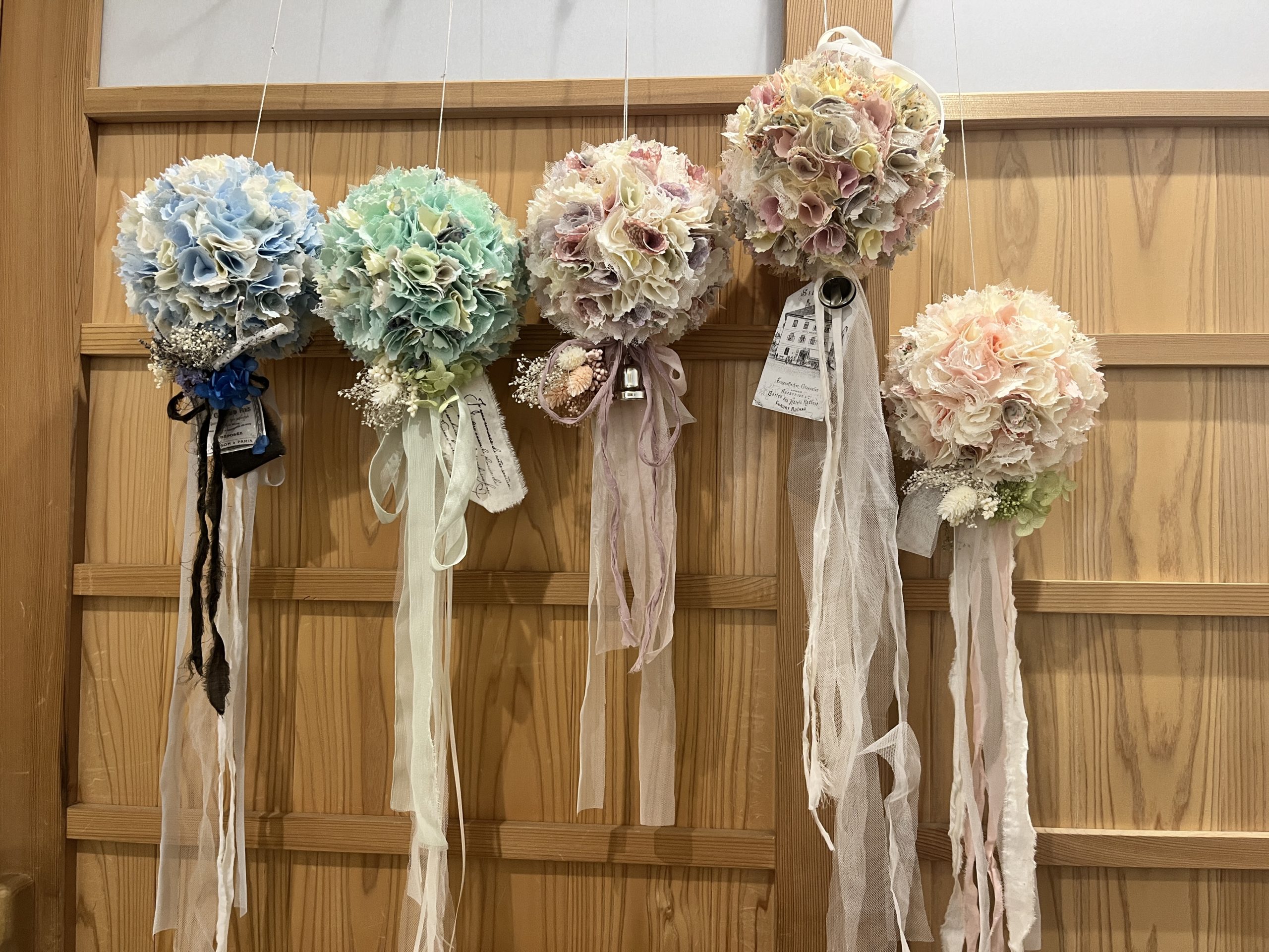 春らしいファブリックボールが完成しました✨