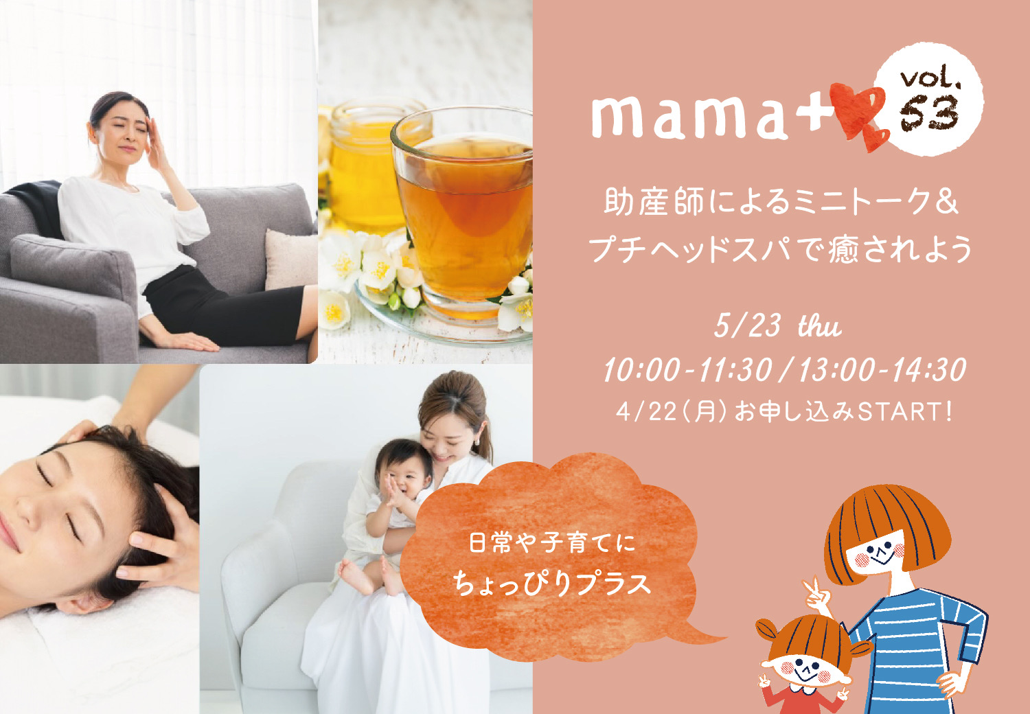 現役助産師のMeikaさんのトークのあと、Kaoriさんのプチヘッドスパ体験が出来るイベントです。