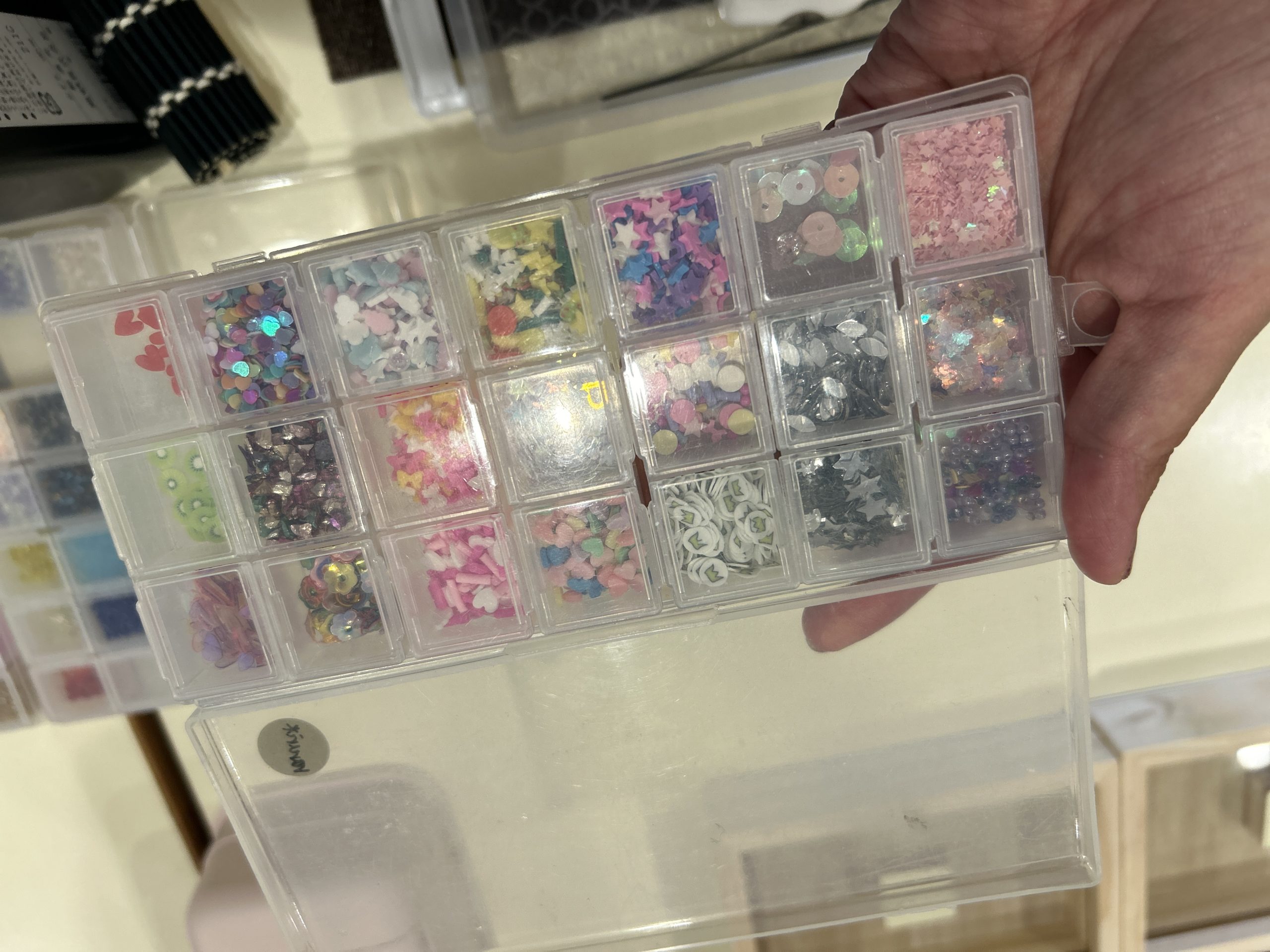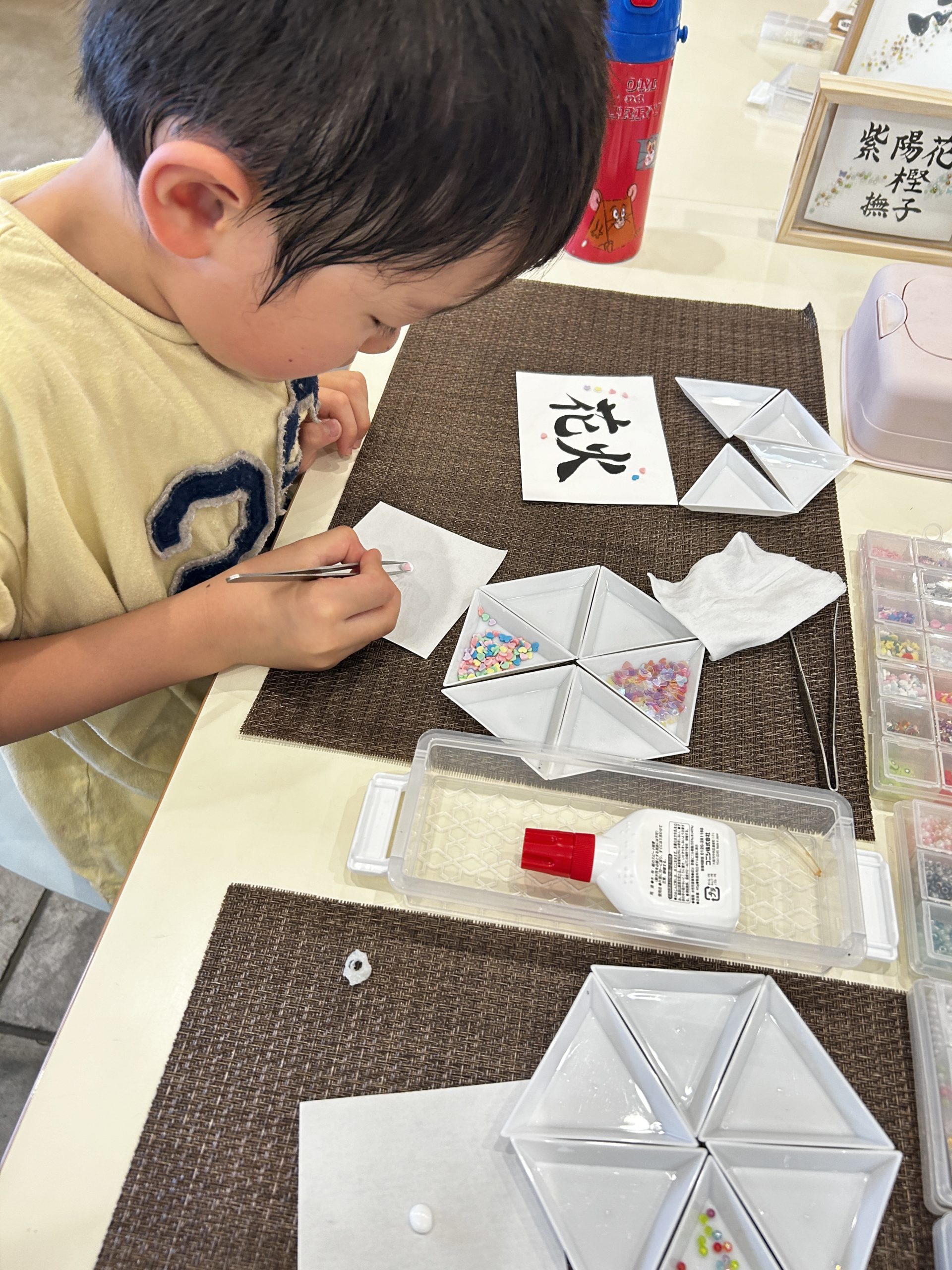 ひとつひとつ丁寧につけていったり、先にボンドを付けてパラパラと落としたり自由に作品を仕上げていきます。