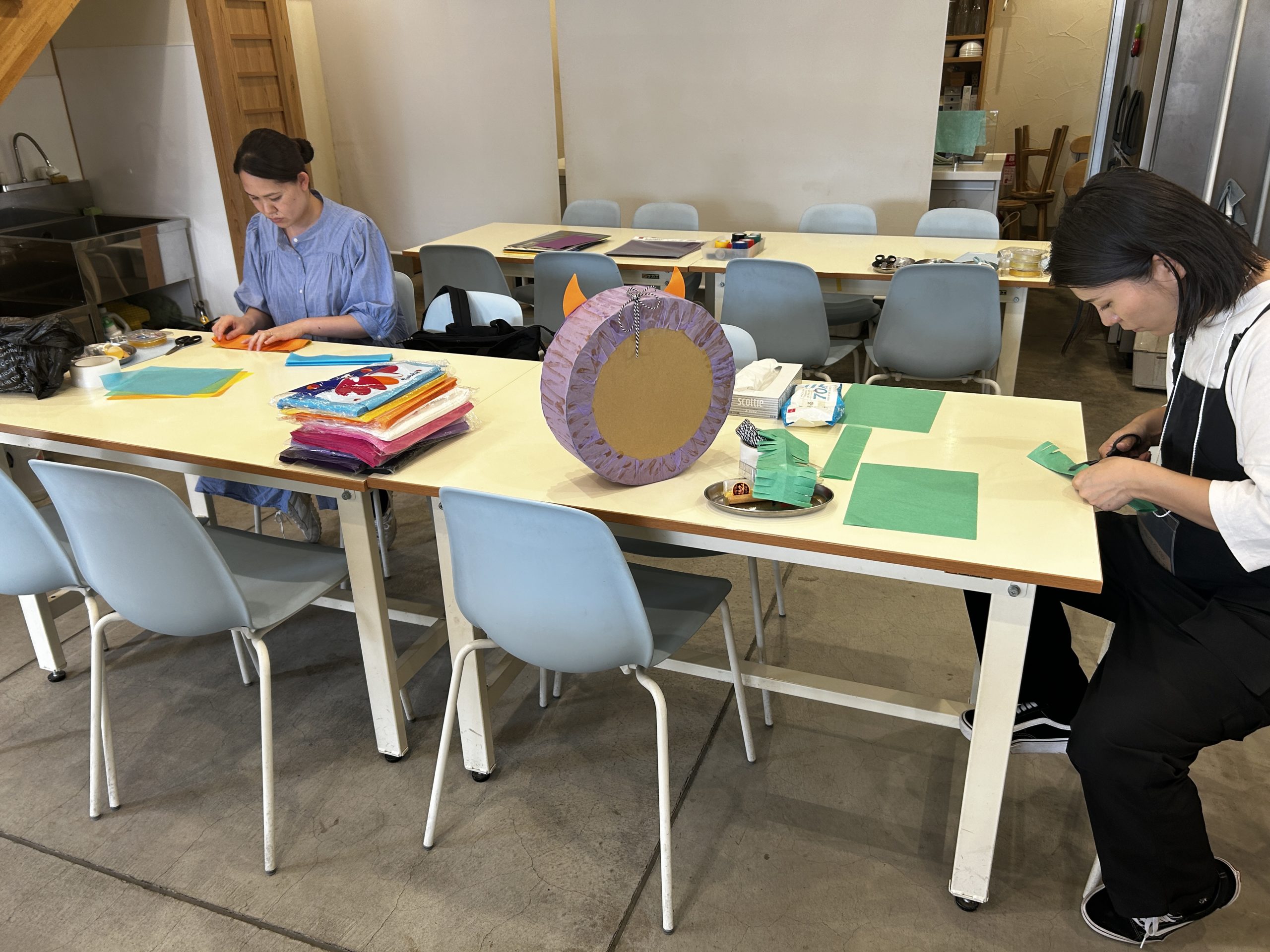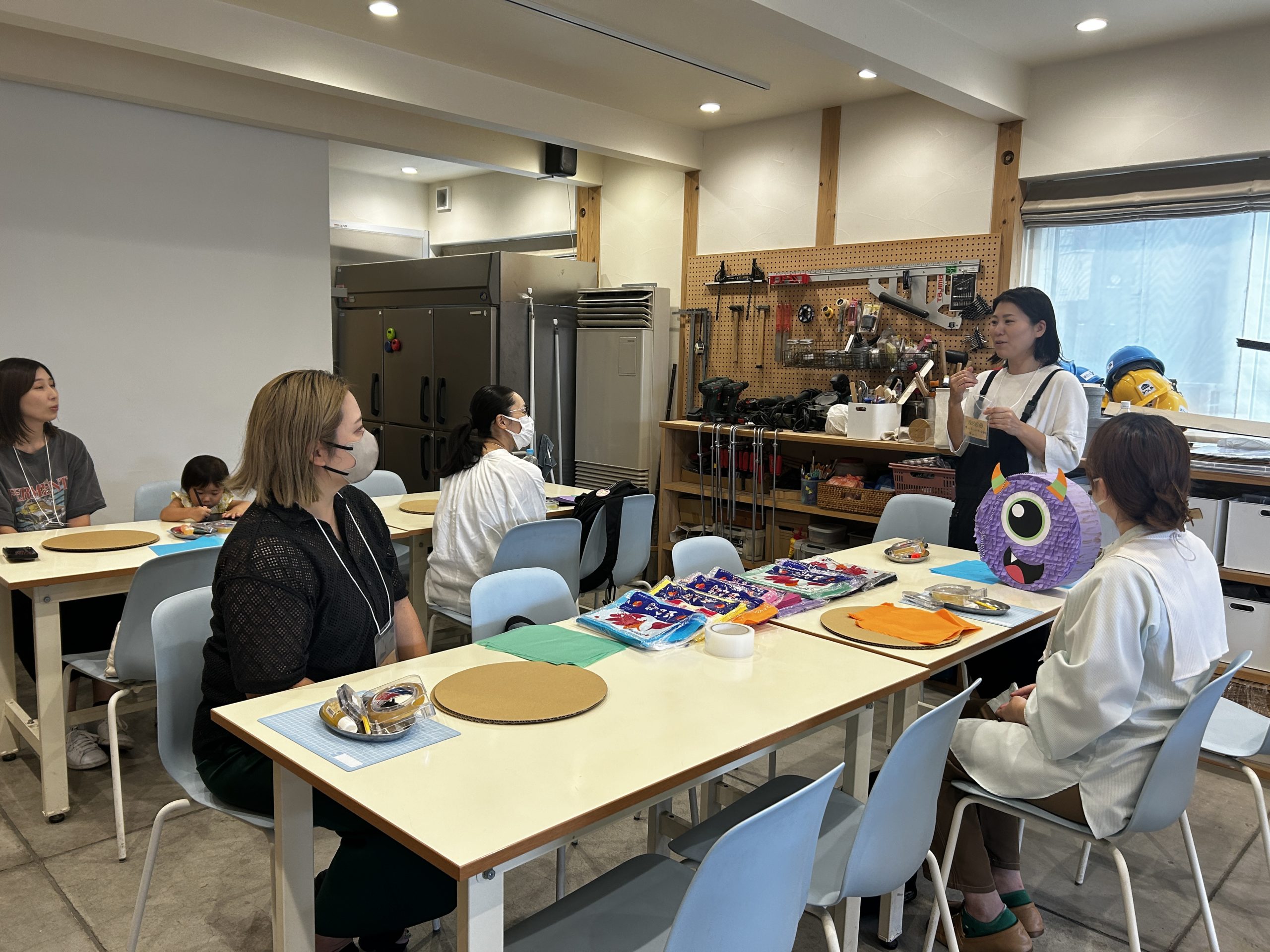 mama+ではお子様を託児に預けてピニャータ作りに没頭できます🎃