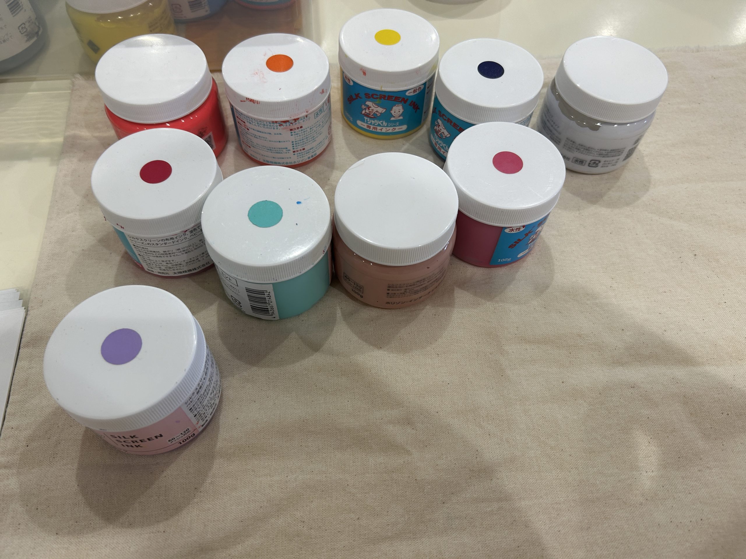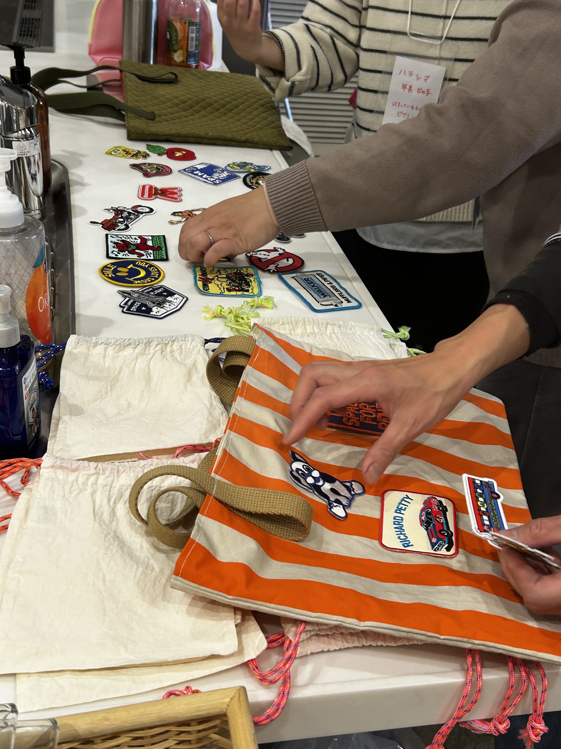 バッグに付けたいワッペンを決めて、ステンシルの文字の色を決めていきます。