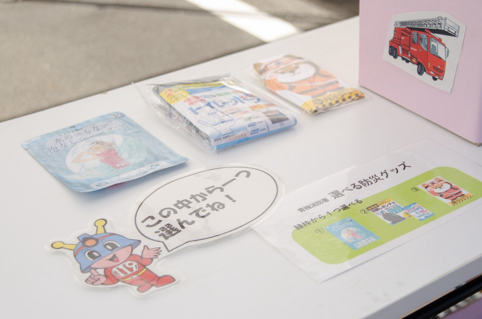 消防署からのプレゼントも、もしもに備えた豪華な品物✨