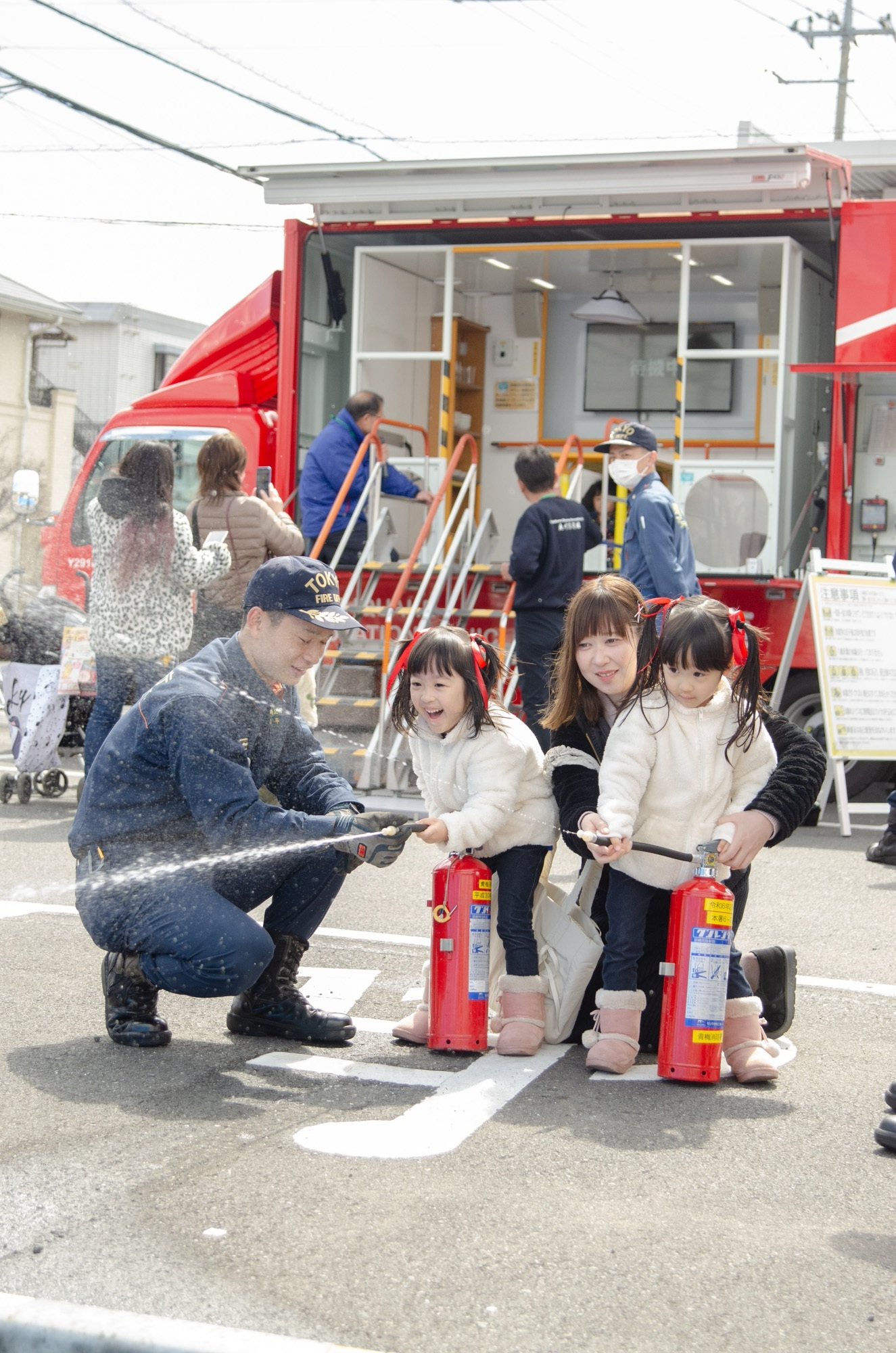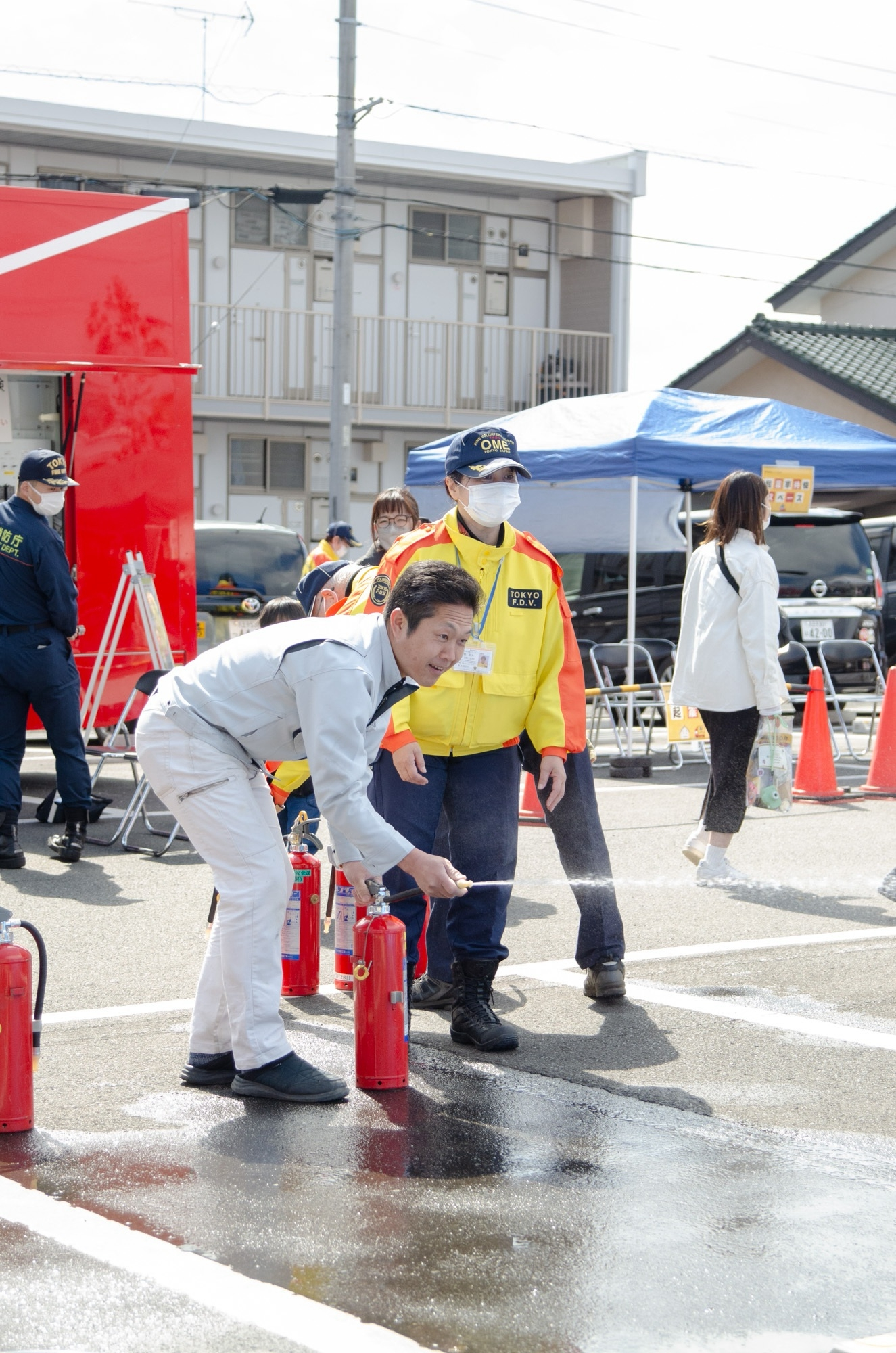 🚒消防グッズのガチャガチャができる初期消火訓練(手前)